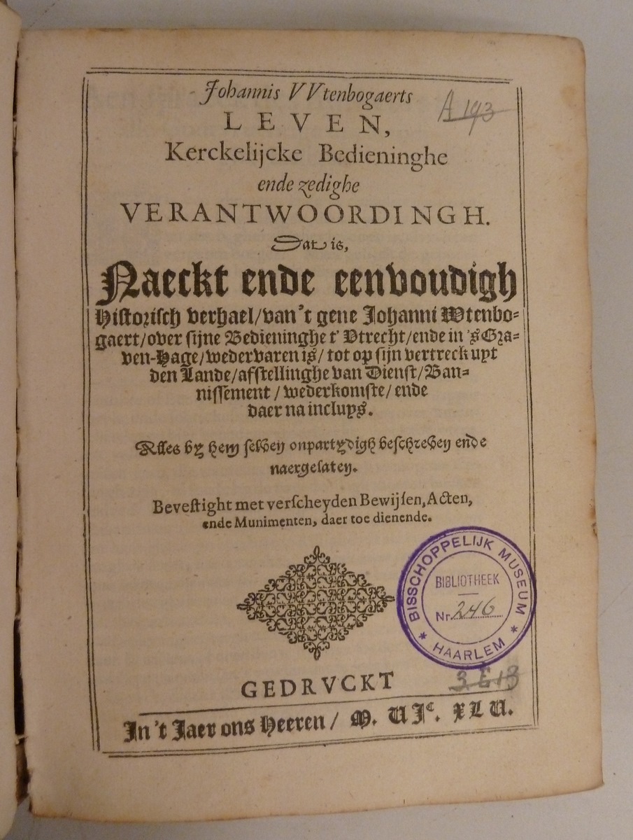 Johannis Wtenbogaerts Leven, kerckelijcke bedieninghe ende zedighe verantwoordingh. Dat is Naeckt ende eenvoudigh historisch verhael [...]