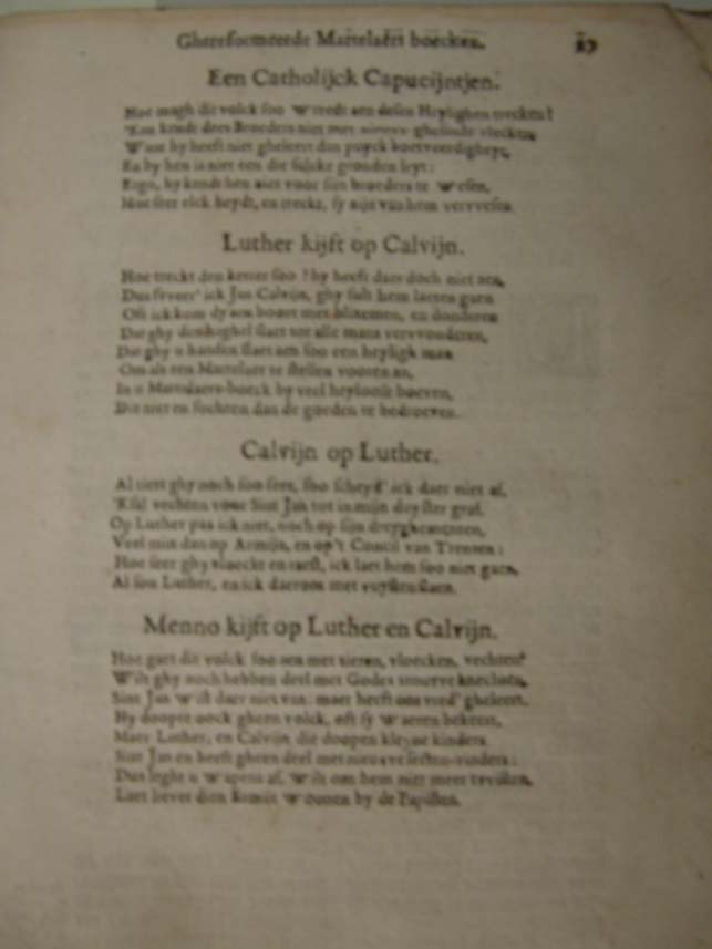 Over de ontledinghe van dry verscheyden nieuw-ghereformeerde martelaers boecken ofte reden-kamp-strydt tusschen de Lutheriaenen, Calvinisten, ende Weder-doopers [...]