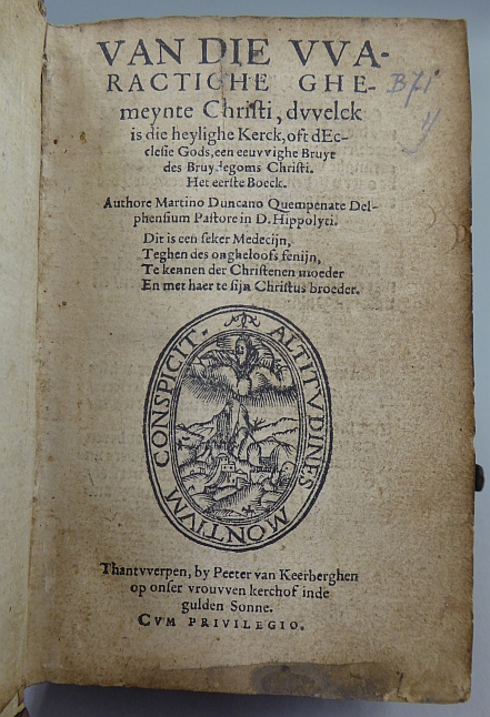 Van die waractighe <!> ghemeynte Christi, dwelck is die heylighe Kerck, oft dEcclesie Gods, een eeuwighe bruyt des bruydegoms Christi. Het eerste (-tweede) boek [...]