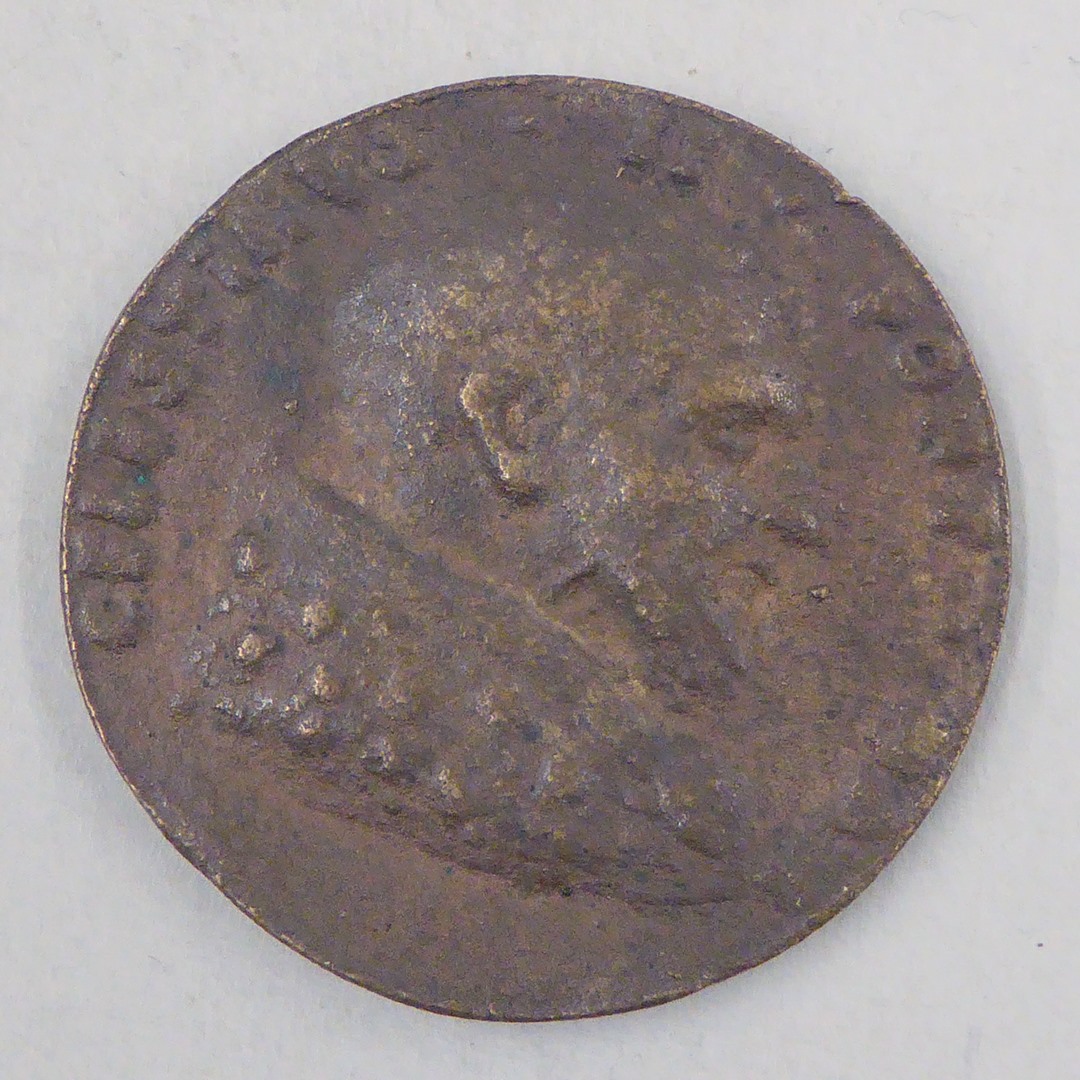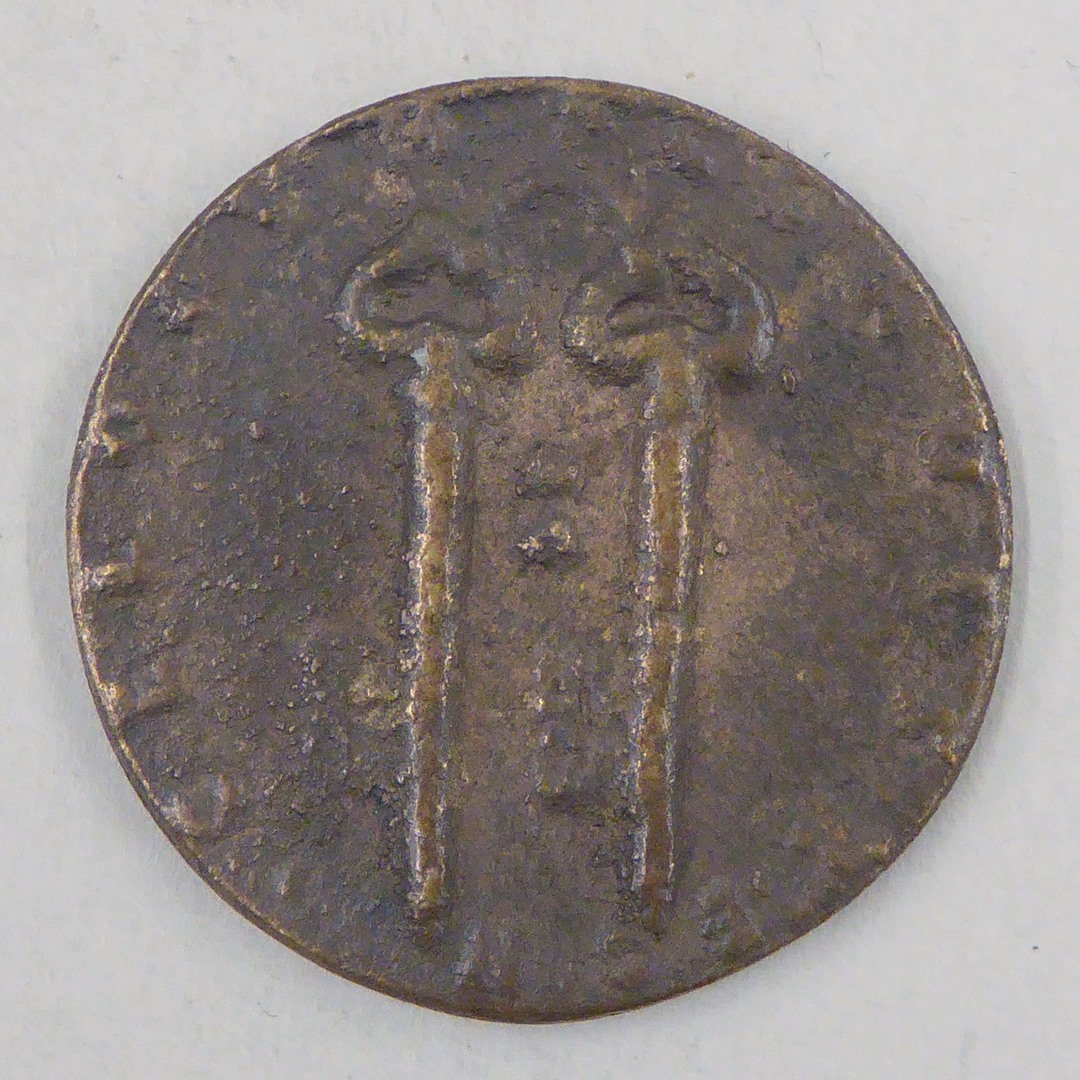 Pauspenning met portret paus Celestinus II (1143-1144), gegoten, kz. twee parallelle sleutels