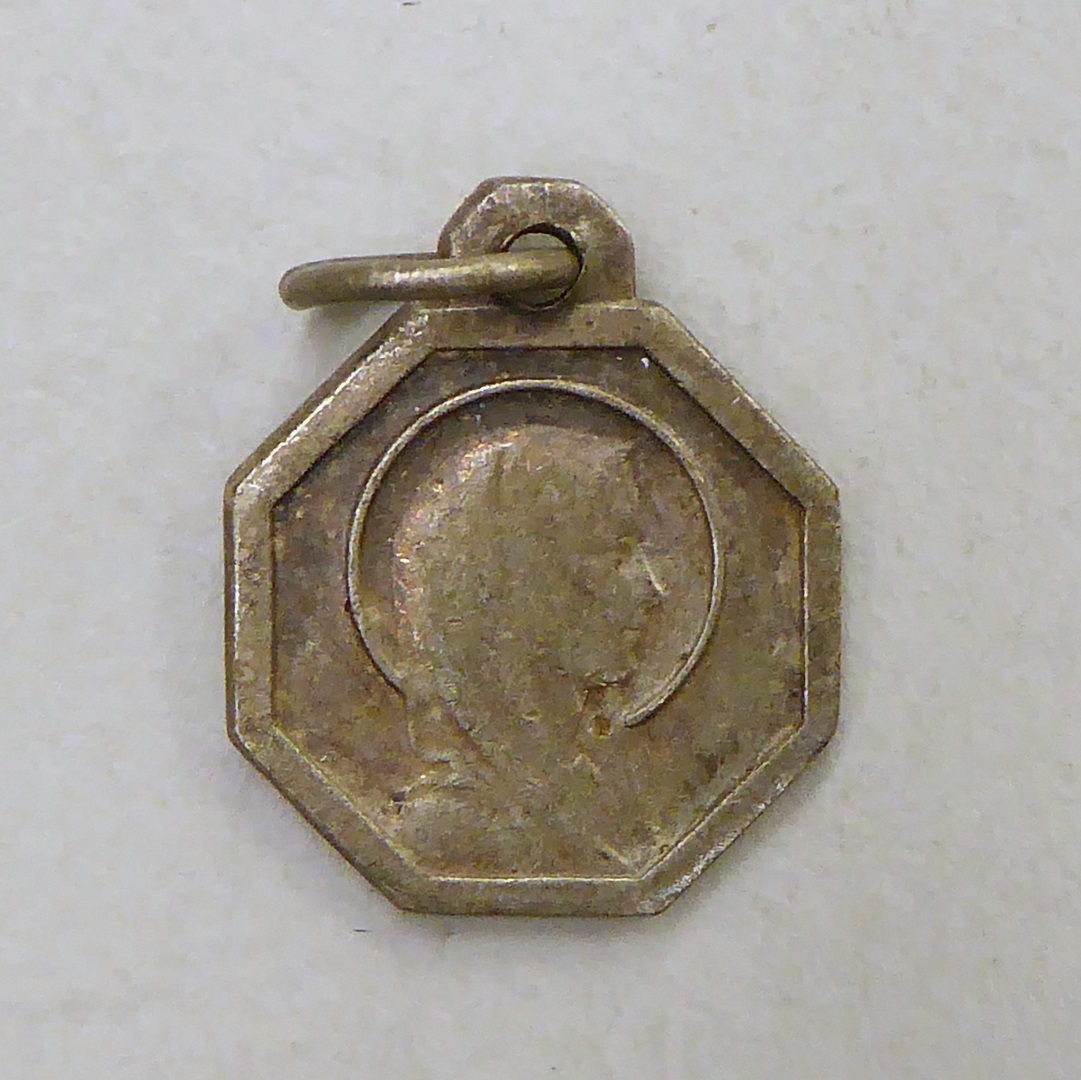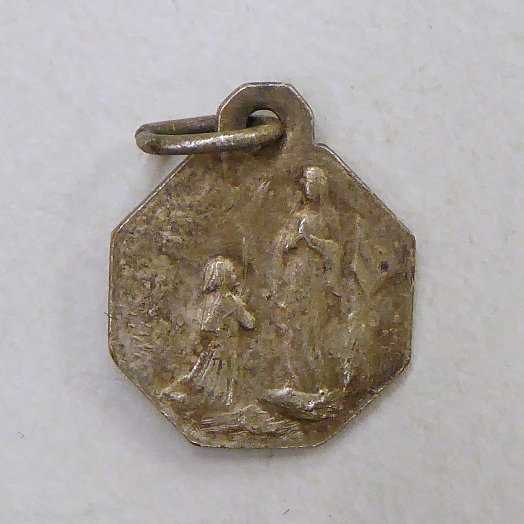 Draagpenning, achthoekig, met portret van Maria, kz. verschijning van O.L. Vrouw van Lourdes
