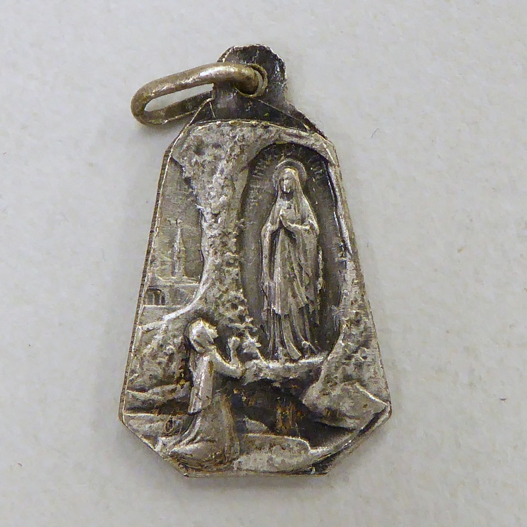 Draagpenning, langwerpig, met portret van Maria, kz. verschijning van O.L. Vrouw van Lourdes