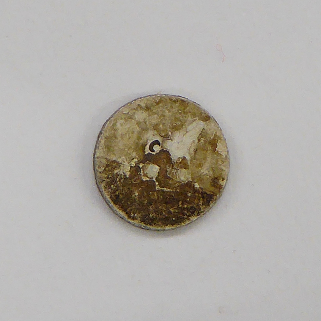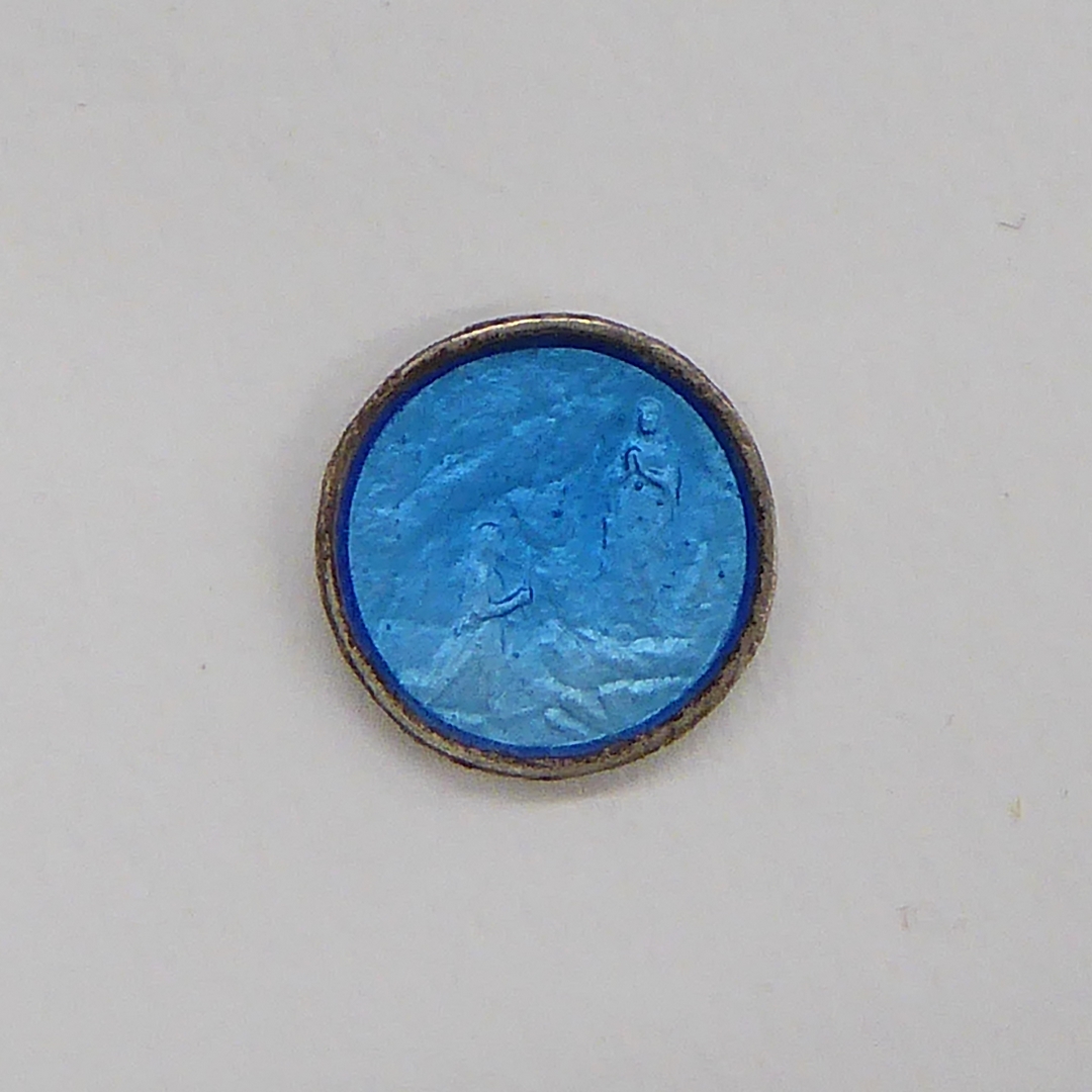Blauwe devotiepenning met O.L. Vrouw van Lourdes met Bernadette, kz. blanco