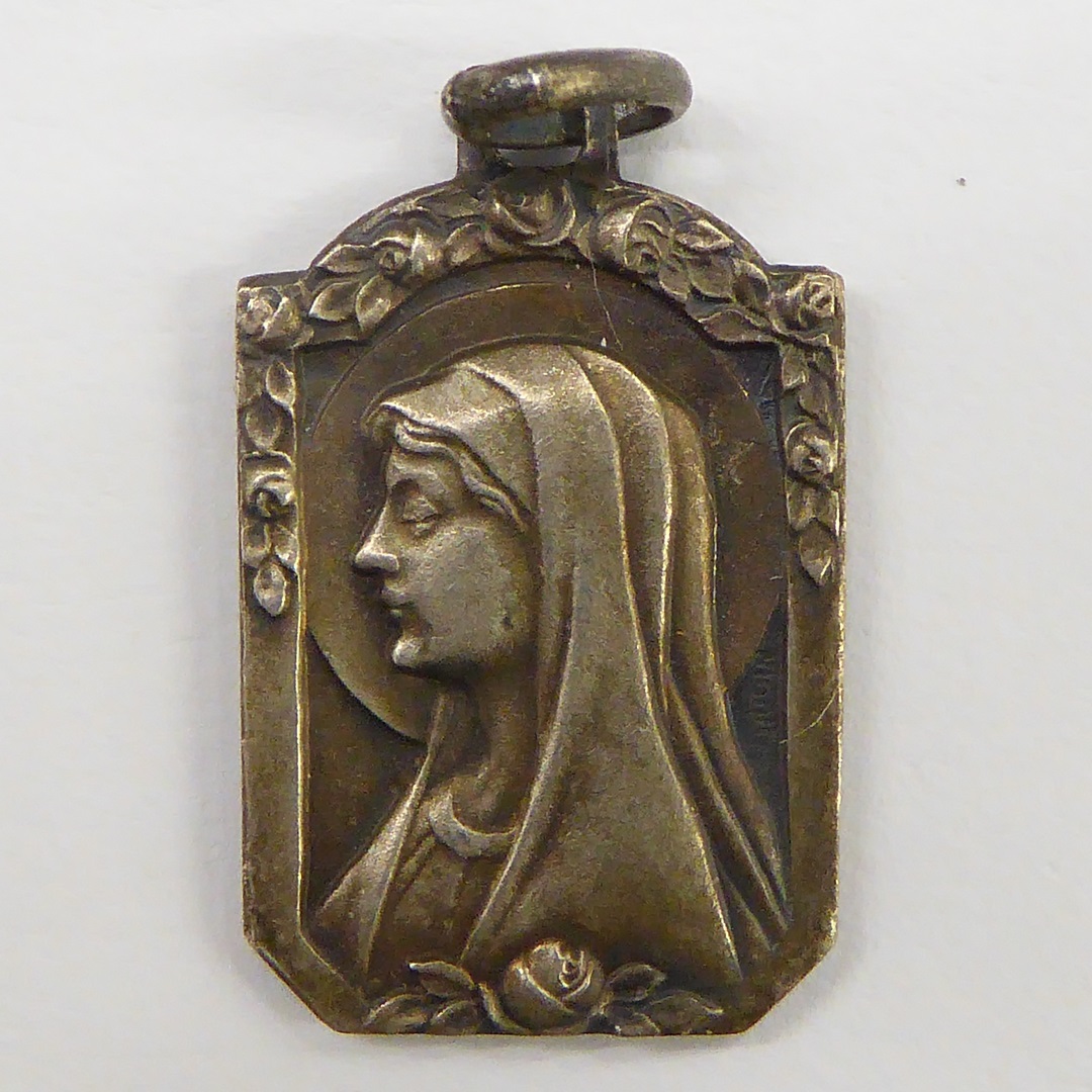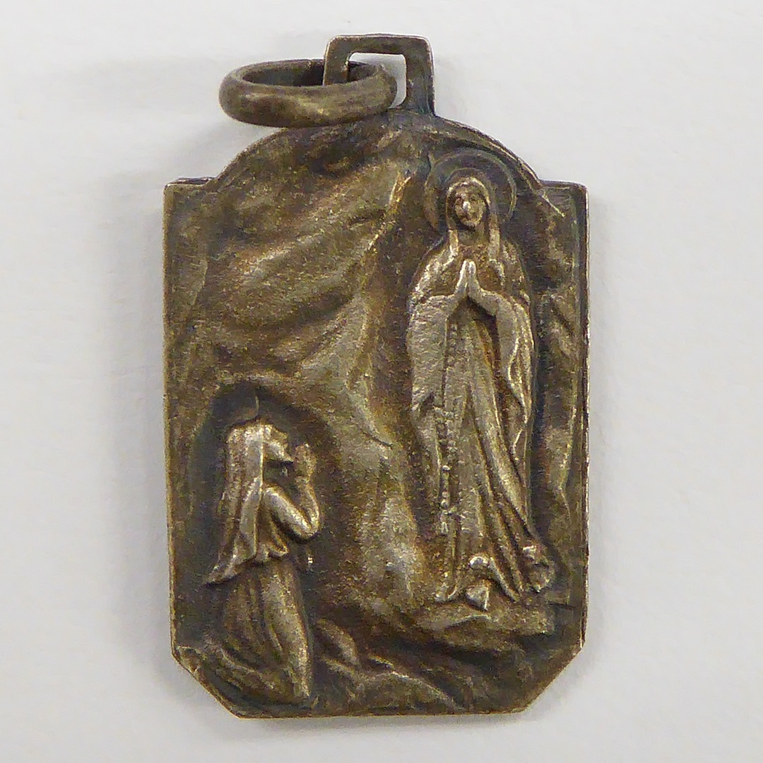 Draagpenning met portret en profil van Maria, kz. verschijning O.L. Vrouw van Lourdes