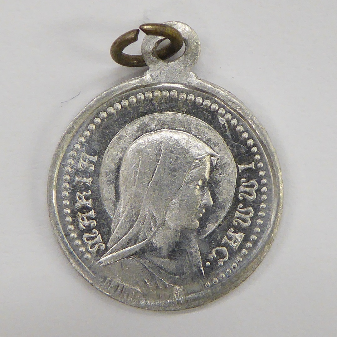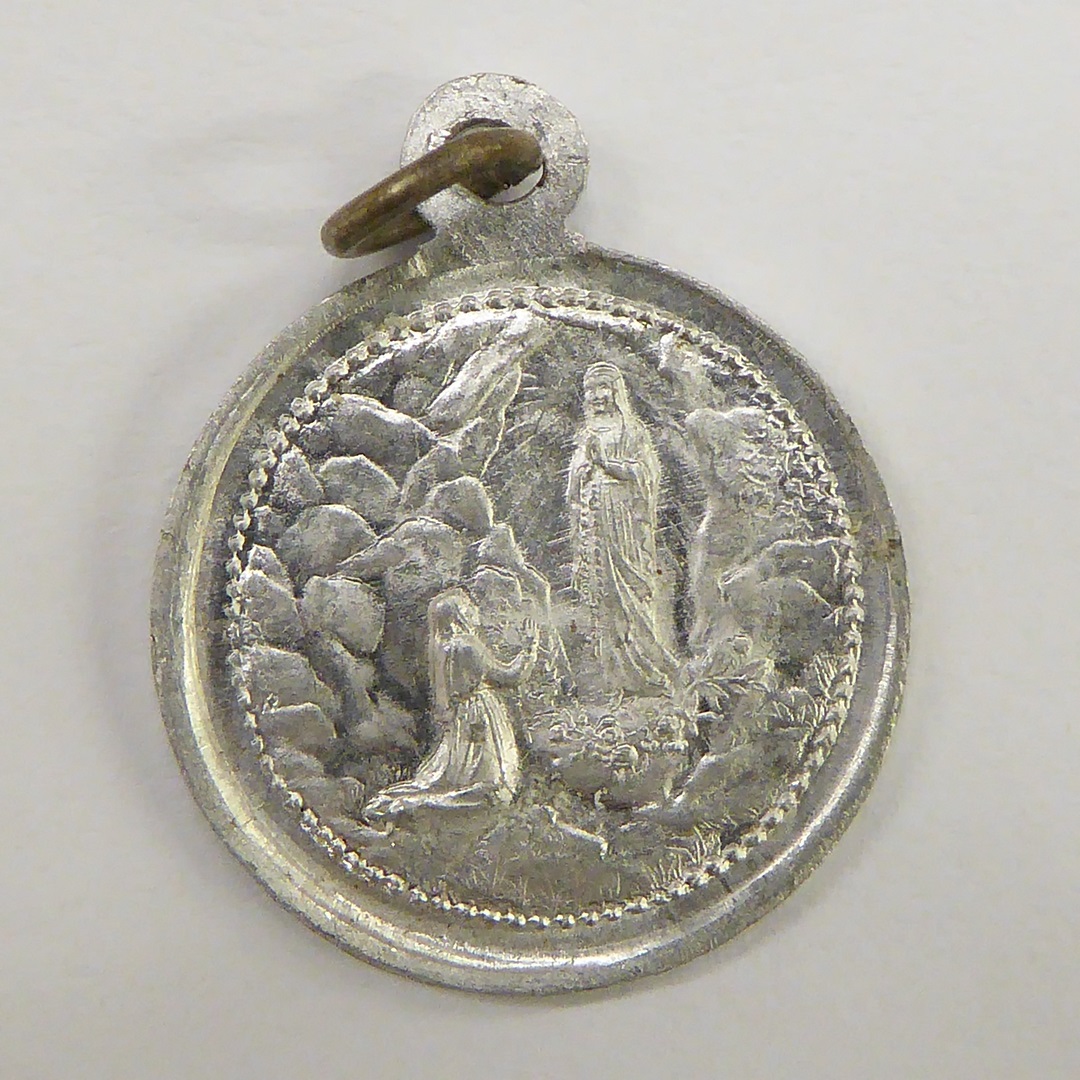 Draagpenning met portret O.L. Vrouw Onbevlekt Ontvangen, kz. verschijning O.L. Vrouw van Lourdes