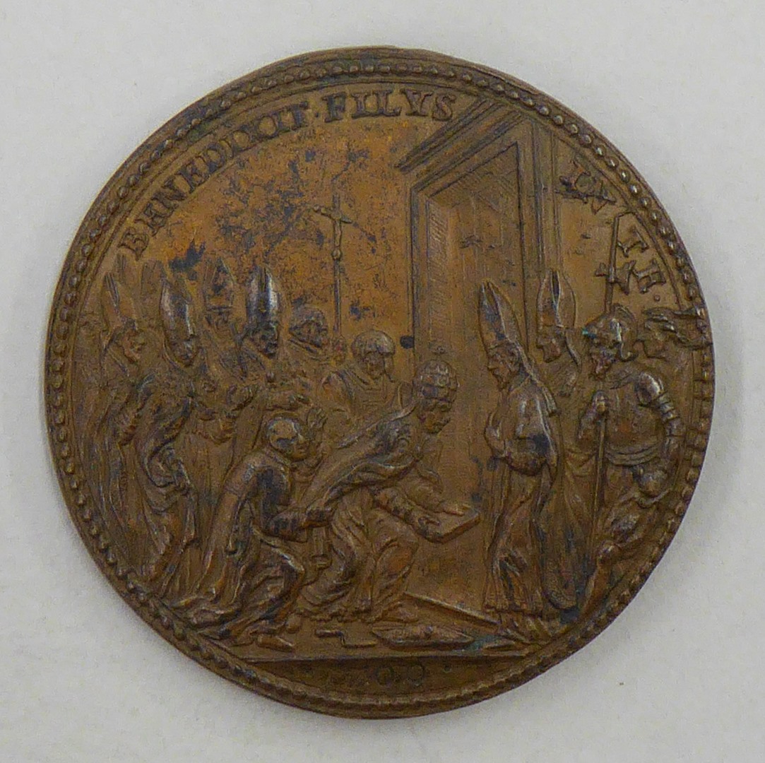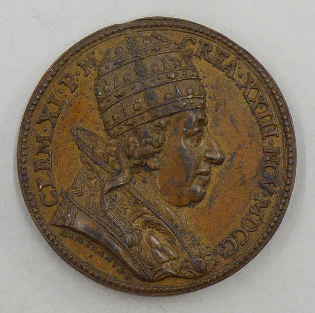 Pauspenning met portret paus Clemens XI (1700-1721), kz. sluiten H. Deur