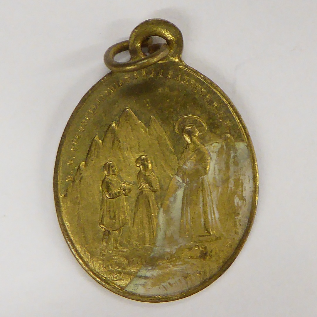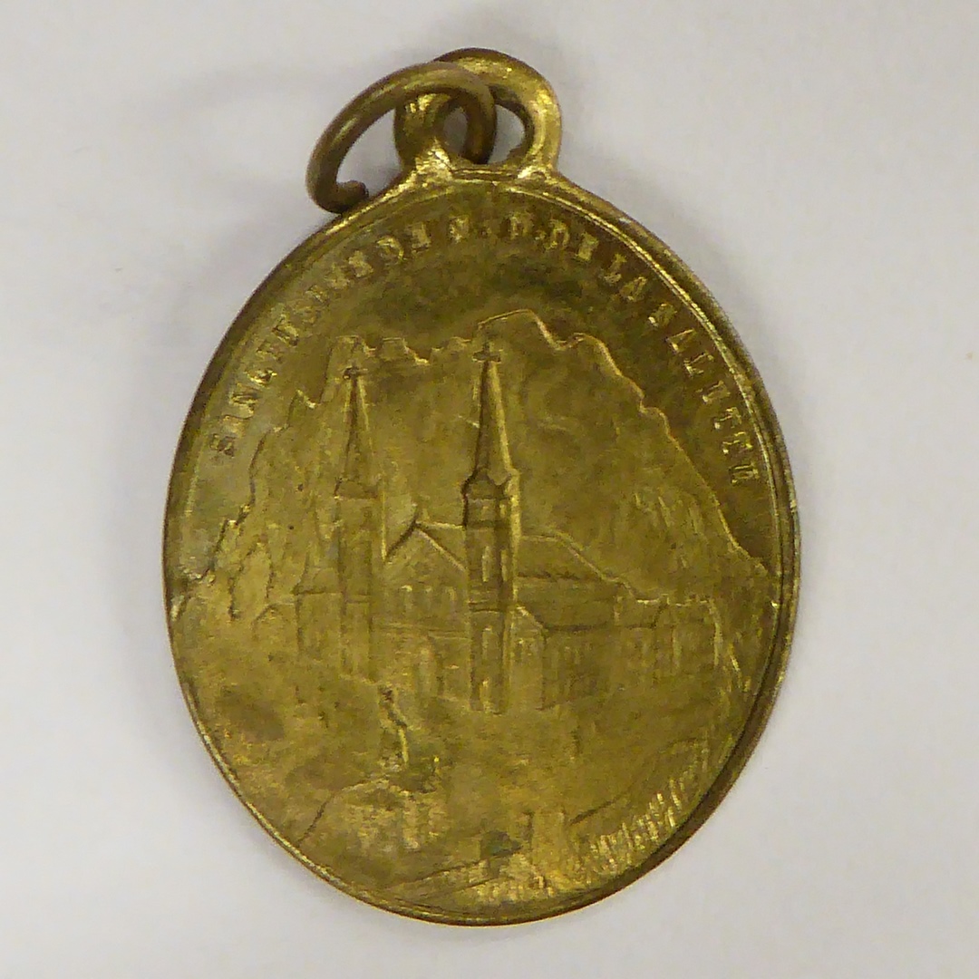 Bedevaartspenning O.L. Vrouw de La Salette met de twee kinderen, kz. bedevaartskerk van La Salette