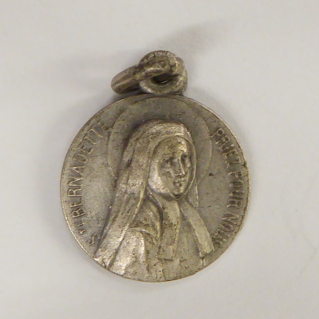 Draagpenning met H. Bernadette Soubirous als herderinnetje, kz. H. Bernadette als kloosterzuster