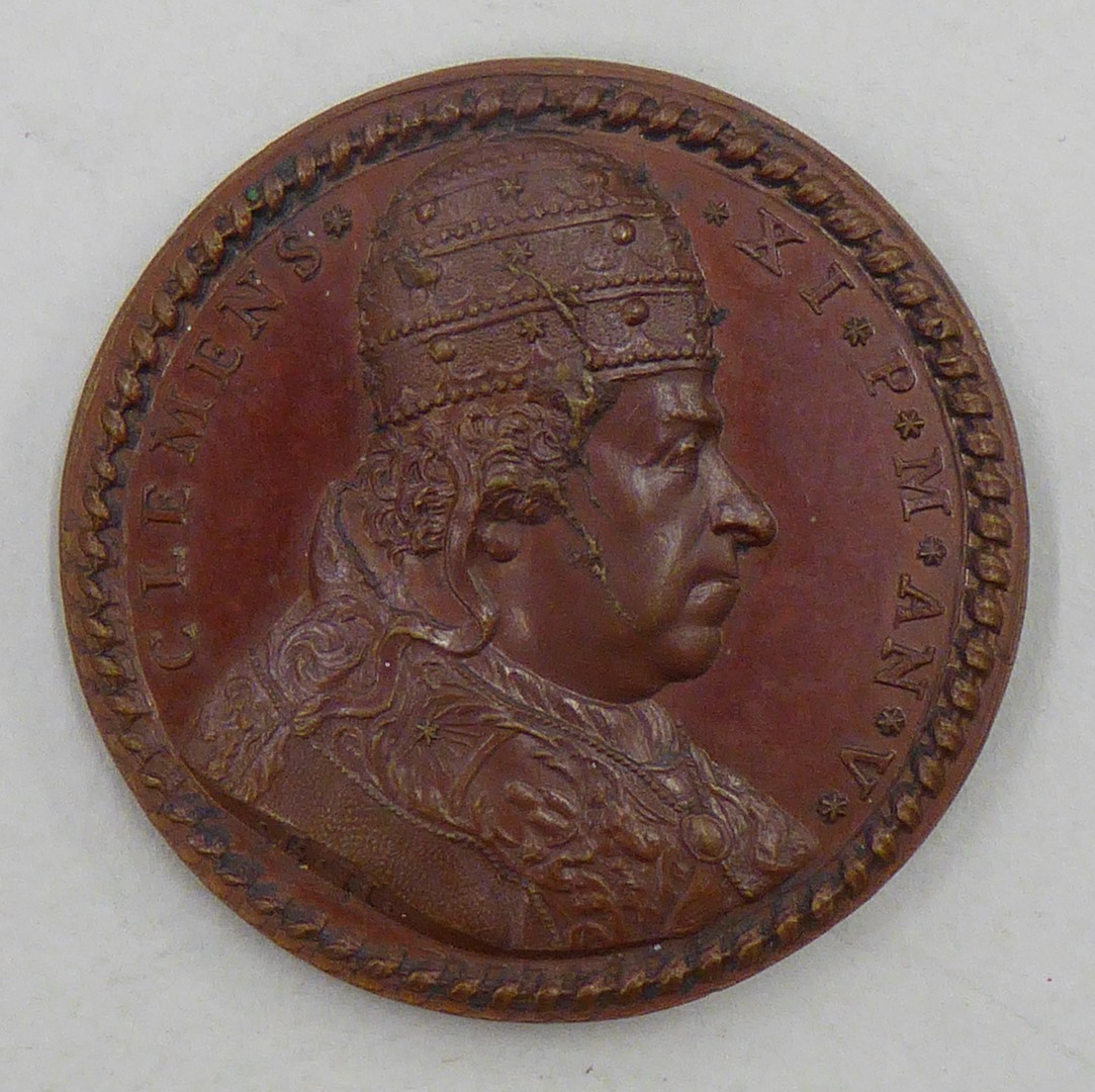 Pauspenning met portret paus Clemens XI (1700-1721), kz. graanpakhuis