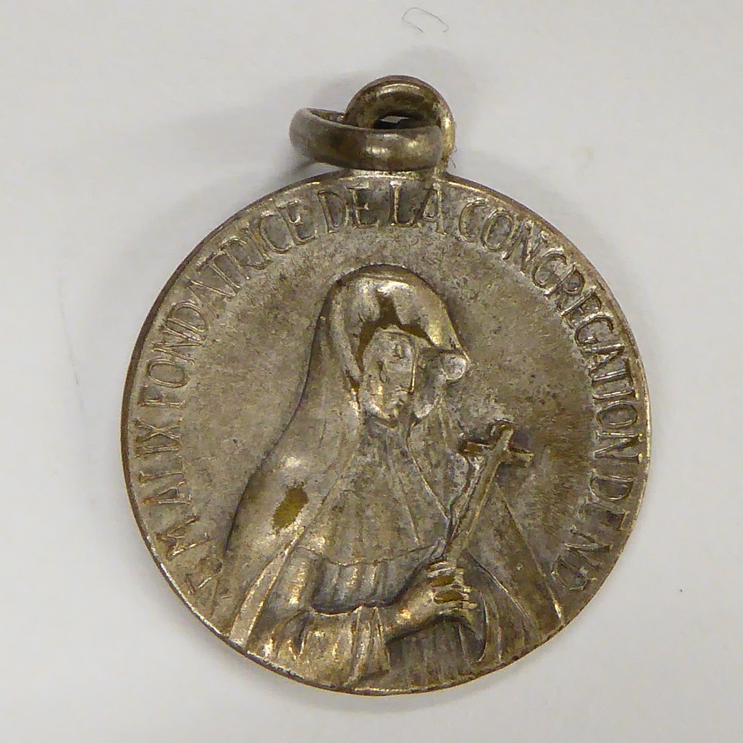 Draagpenning Zalige Maria Theresia van Jezus, Alix de Clerc, kz. Lotharingskruis, lelie en zwaard