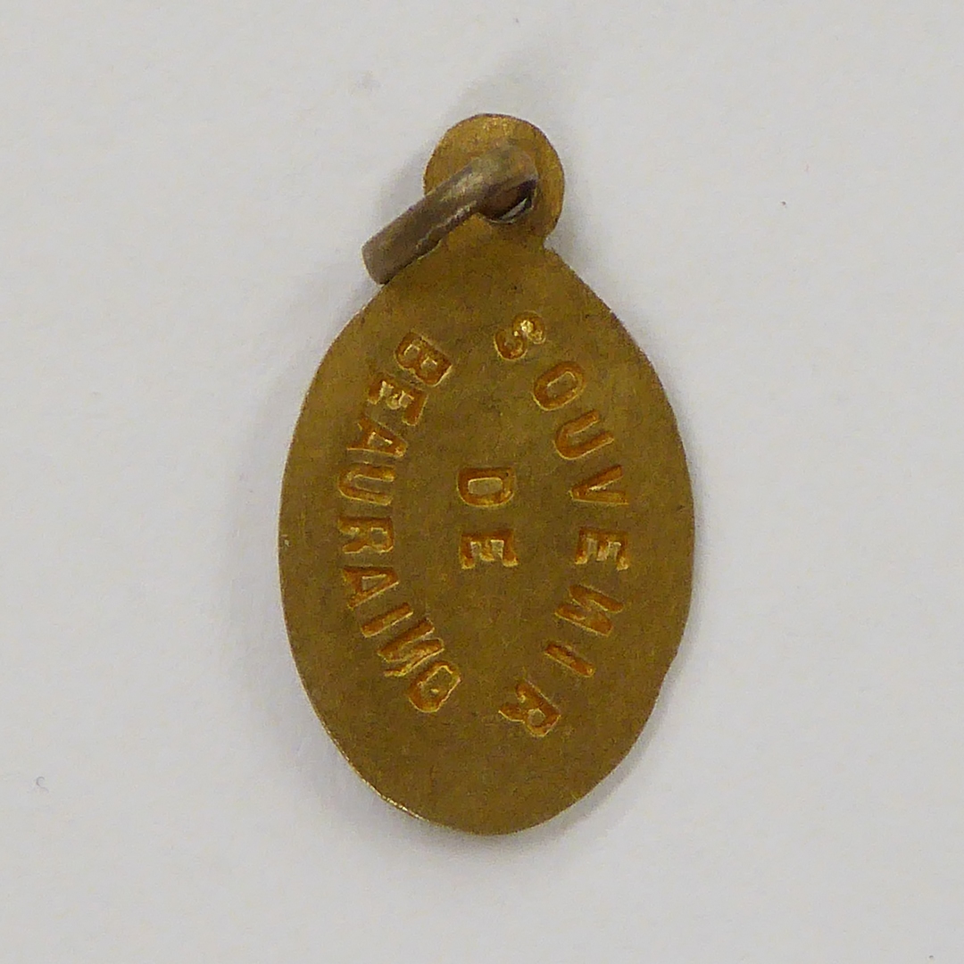 Bedevaartspenning met O.L. Vrouw van Beauraing, kz. tekst