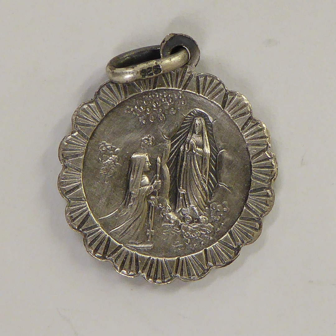 Draagpenning met portret en profil van Maria, kz. O.L. Vrouw van Lourdes met Bernadette