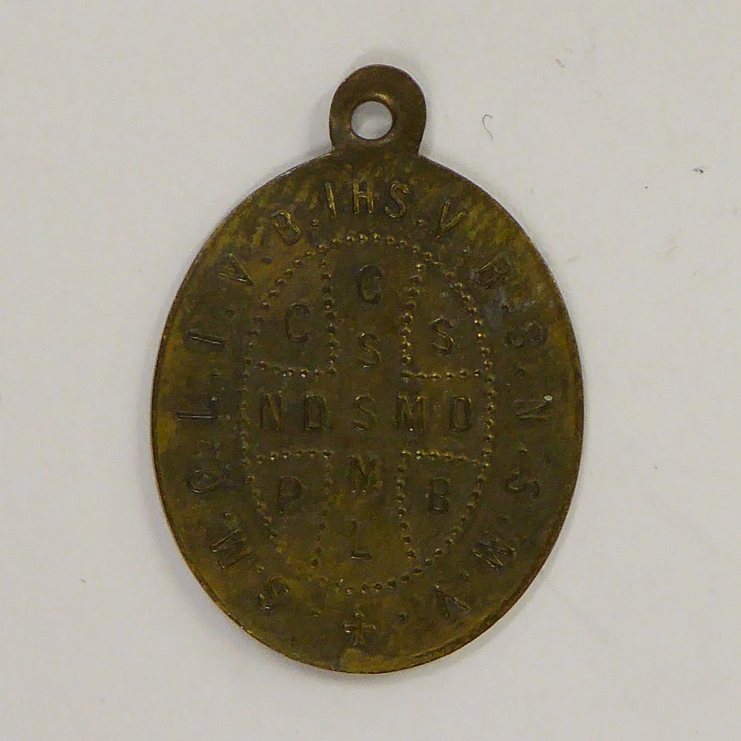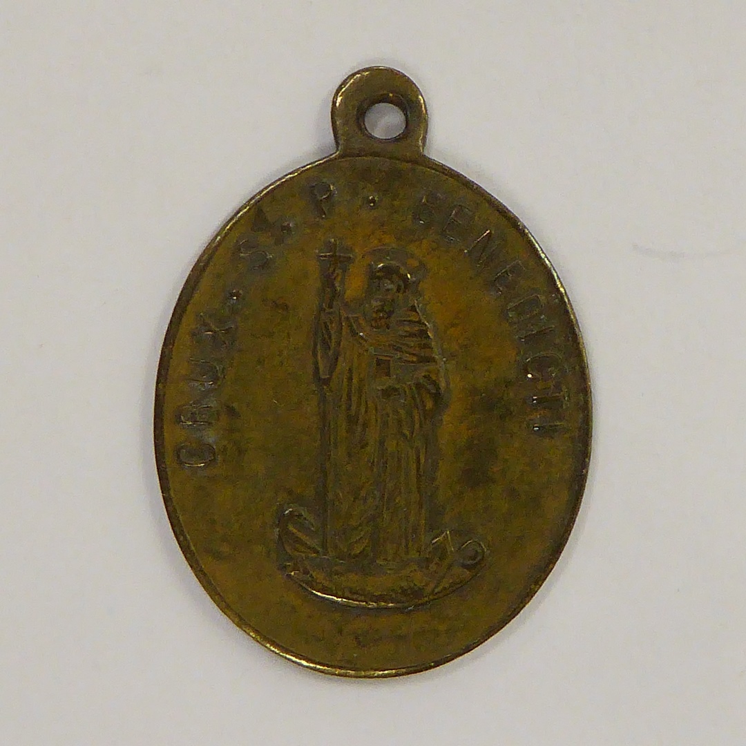 Benedictuspenning met H. Benedictus, kz. Benedictuskruis