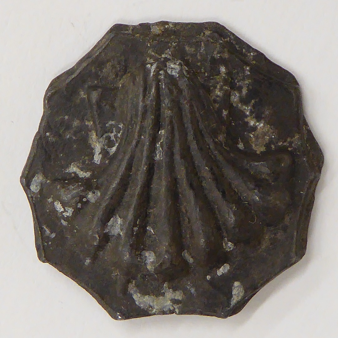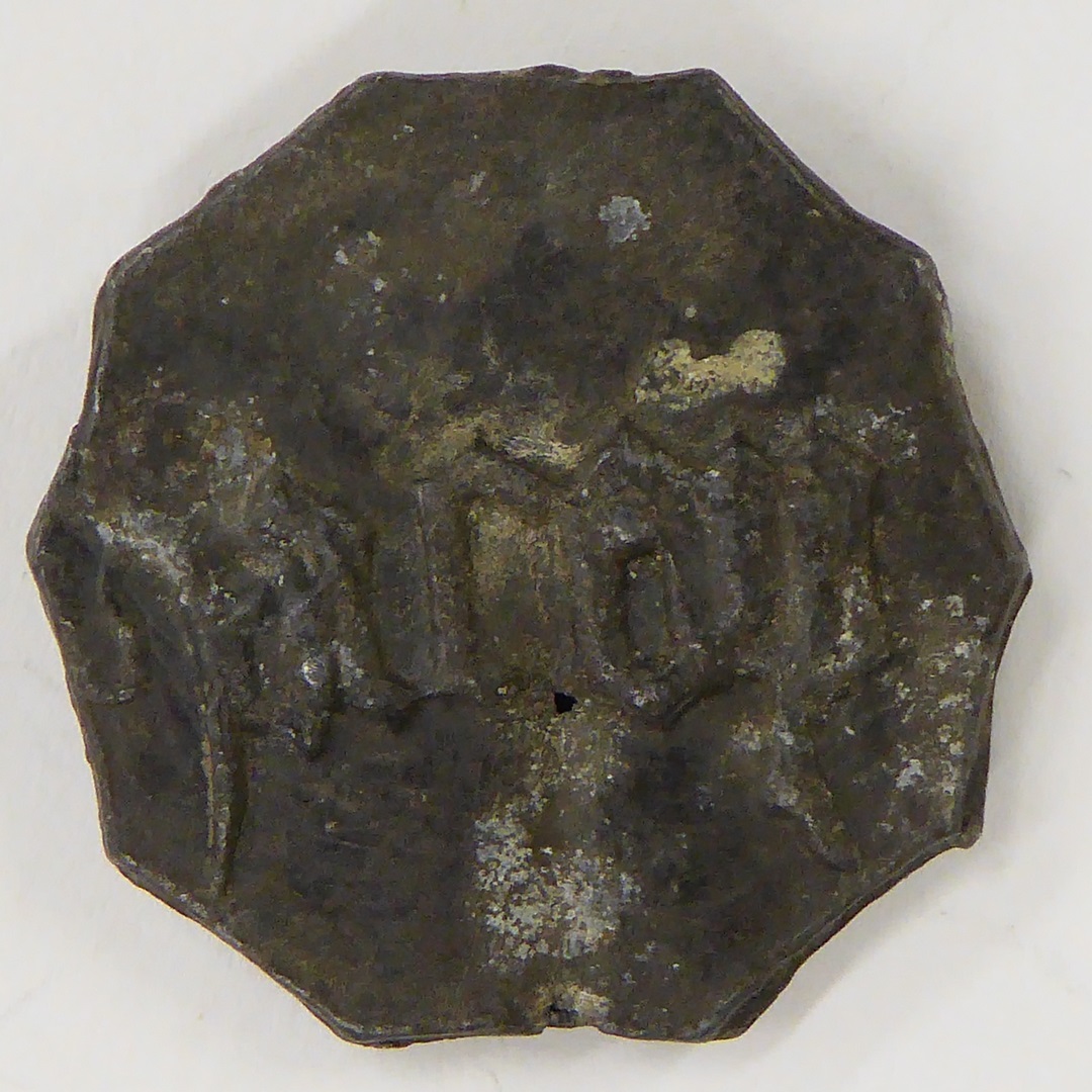 Broodpenning, tienhoekig, St. Jacobskerk Brugge met Jacobsschelp, kz. met "Jacop"