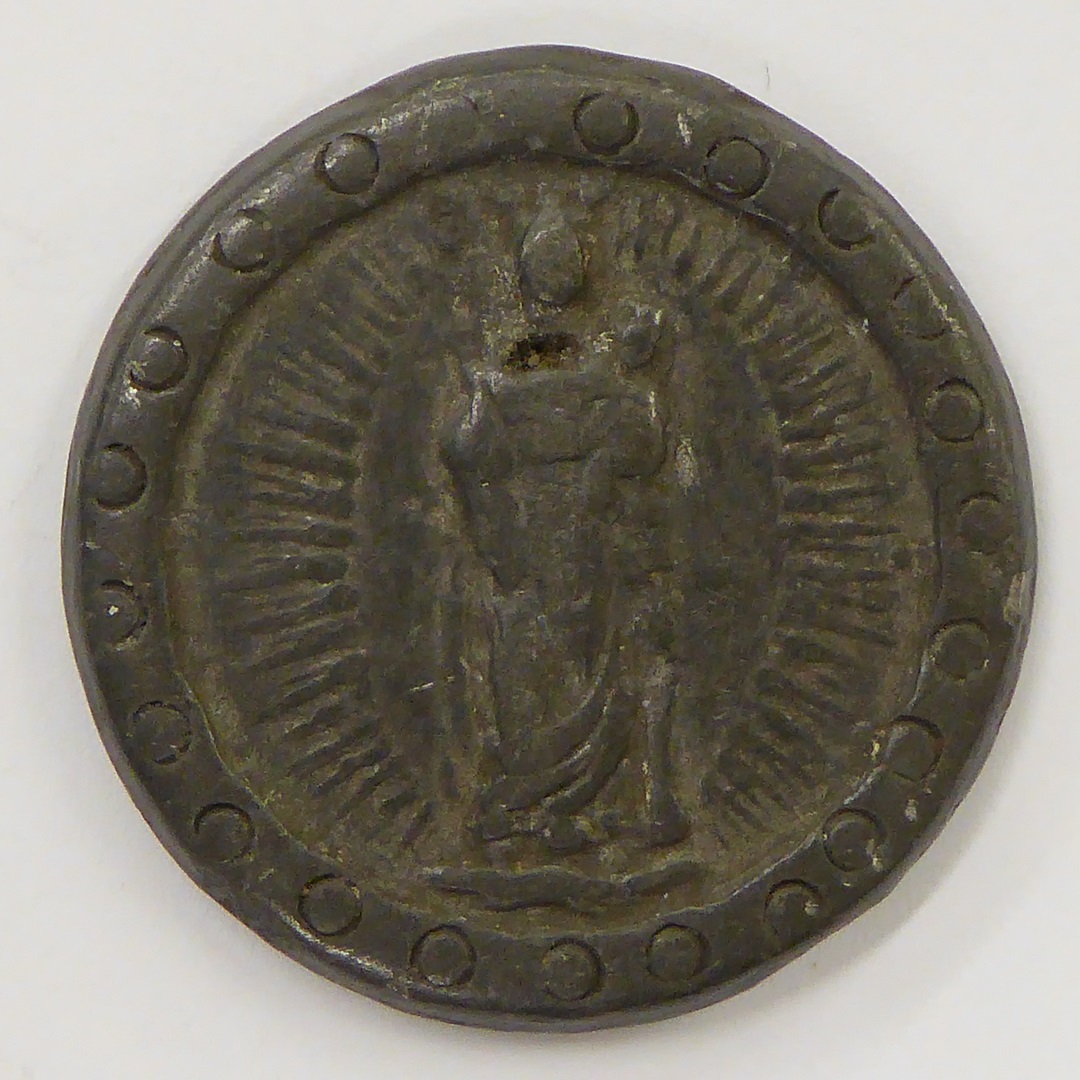 Penning met O.L. Vrouw in stralenkrans, kz. H. Geest in stralenkrans