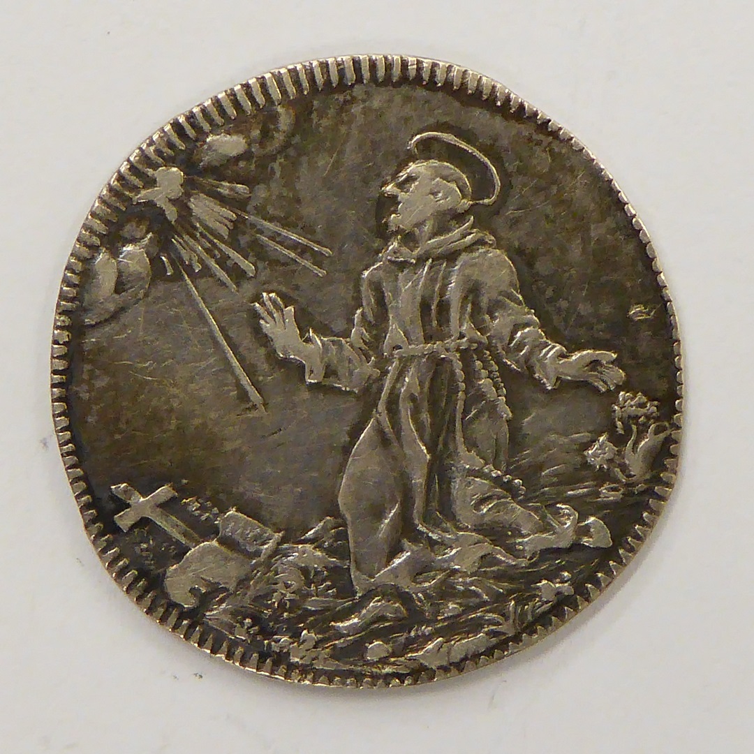 Giulio paus Clemens XI (1700-1721) met wapen, kz. H. Franciscus van Assisi knielend