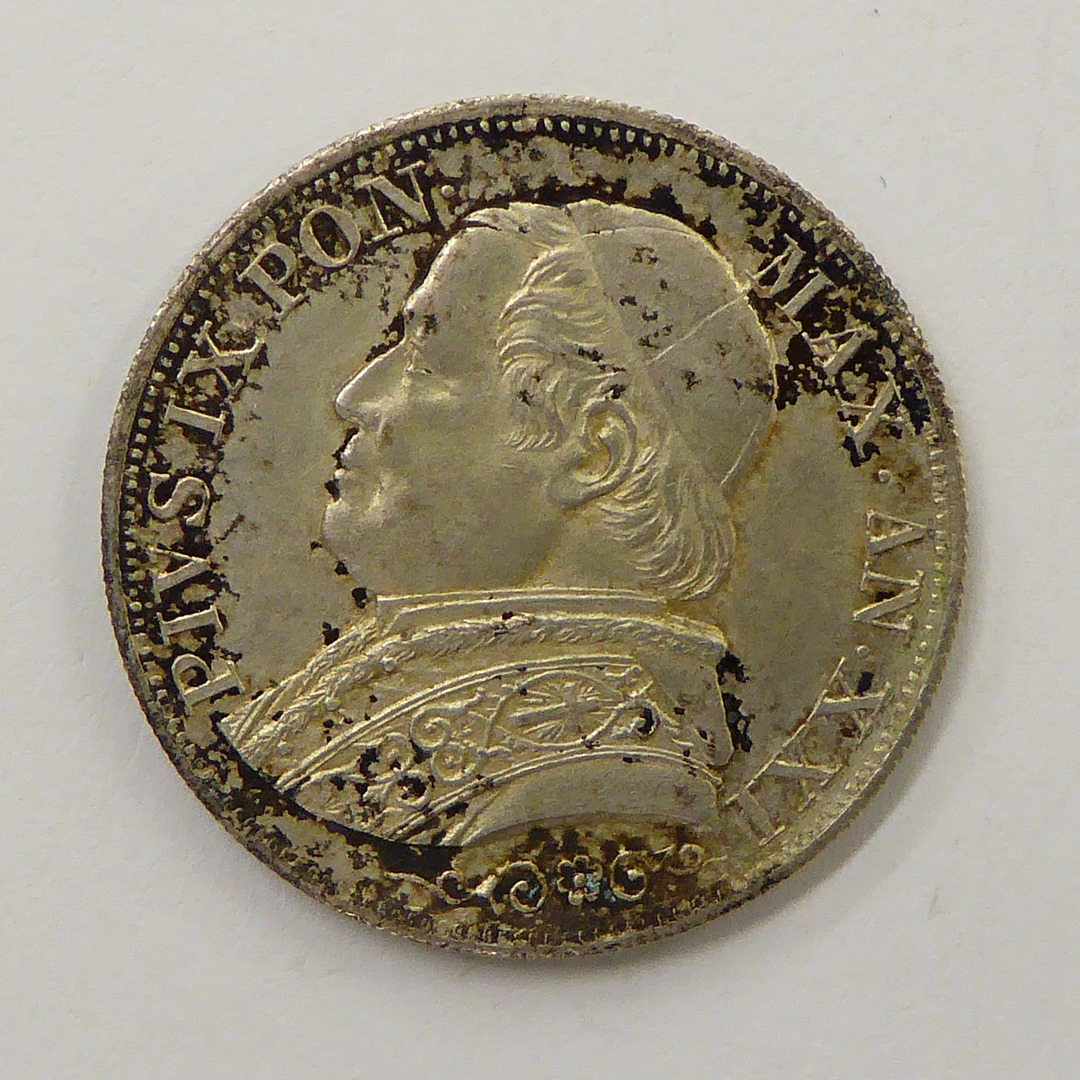 Eén lire met portret paus Pius IX (1846-1878), kz. tekst in lauwerkrans