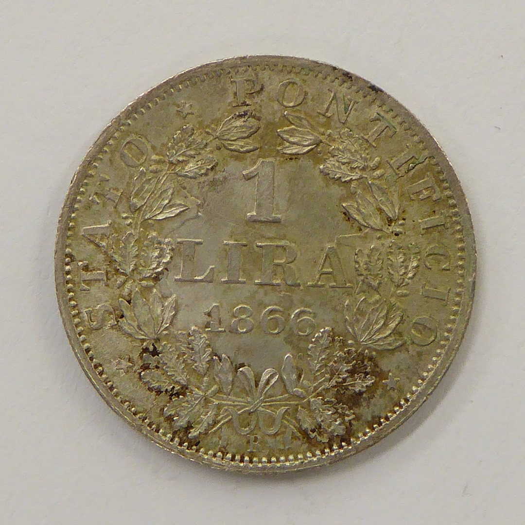 vz.: PIVS. IX. PON. MAX. AN. XXI. kz.: STATO PONTIFICIO / 1 LIRE 1866
