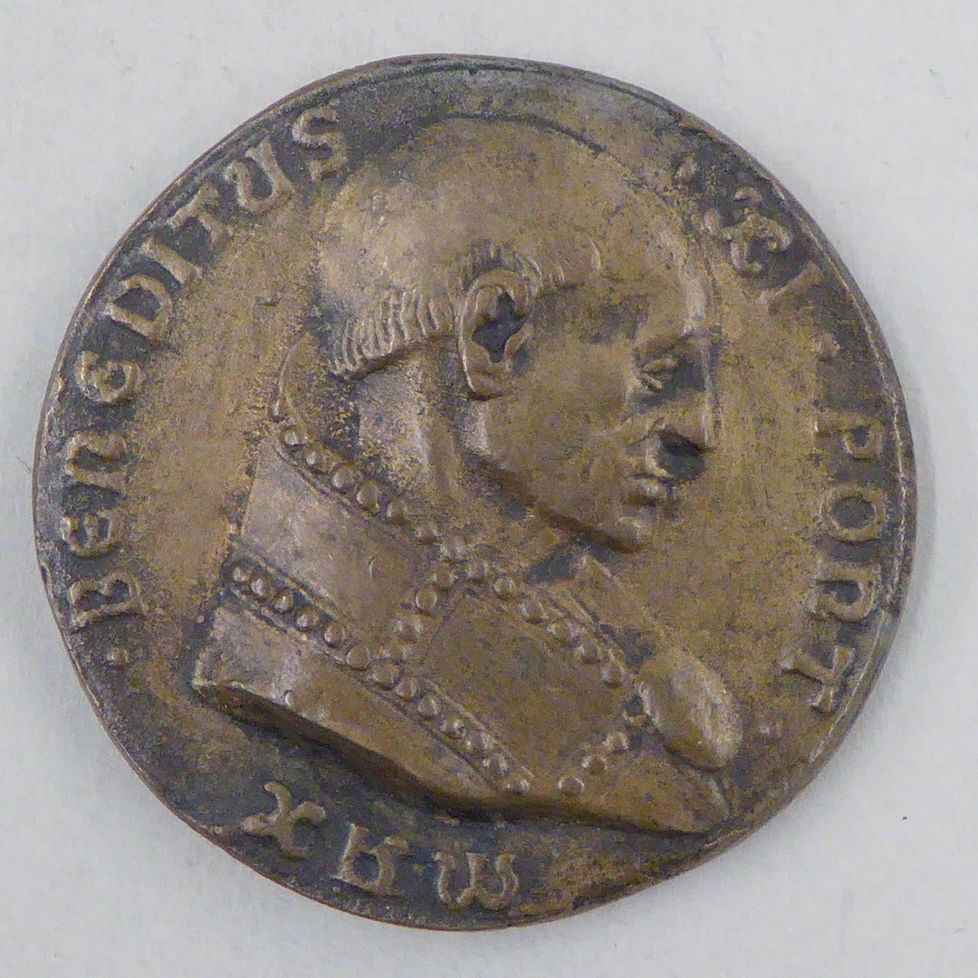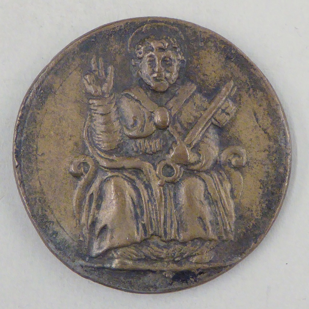 Pauspenning met portret paus Benedictus XI (1303-1304), gegoten, kz. H. Petrus