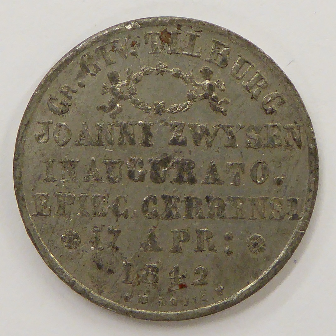 vz.: --- kz.: GR. CIV. TILBVRG. / JOANNI ZWYSEN INAVGVRATO EPISC. CERENSI. 17. APR. 1842