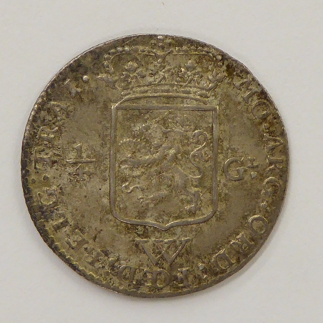 Kwart gulden Utrecht met Nederlandse maagd, kz. wapen van de Republiek