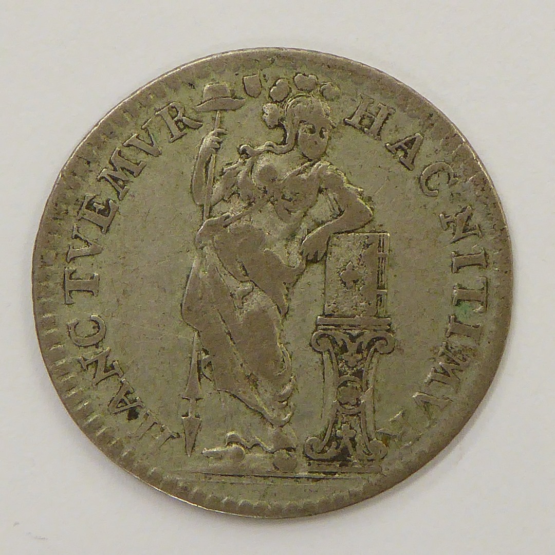 Nieuwjaarspenning Utrecht met Nederlandse maagd, kz. wapen van de Republiek