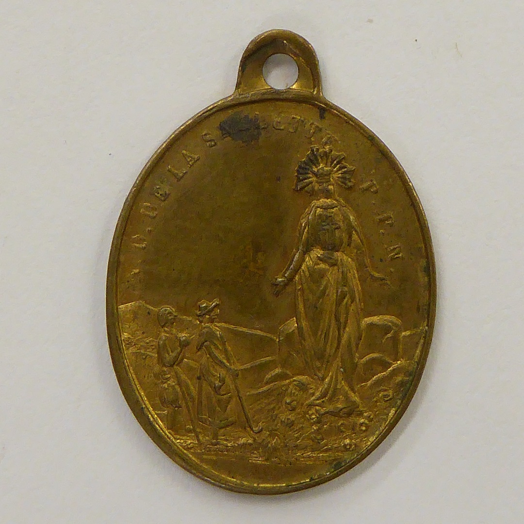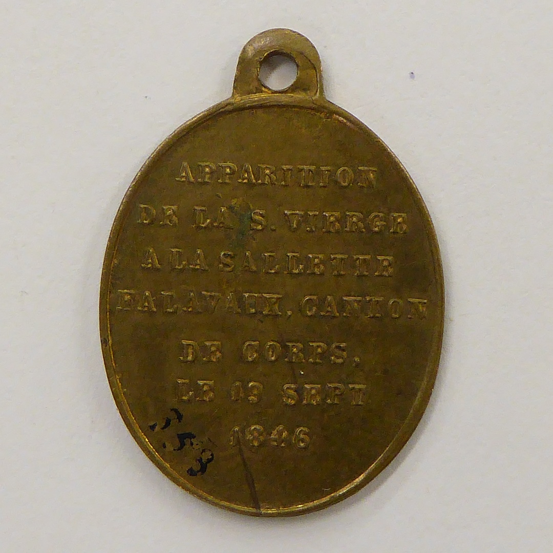 Draagpenning met O.L. Vrouw de la Salette met de twee kinderen, kz. tekst