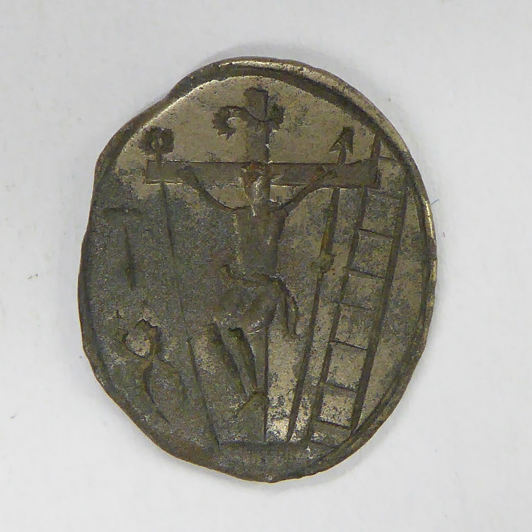 Zegelstempel, ovaal, met gekruisigde Christus en lijdenswerktuigen