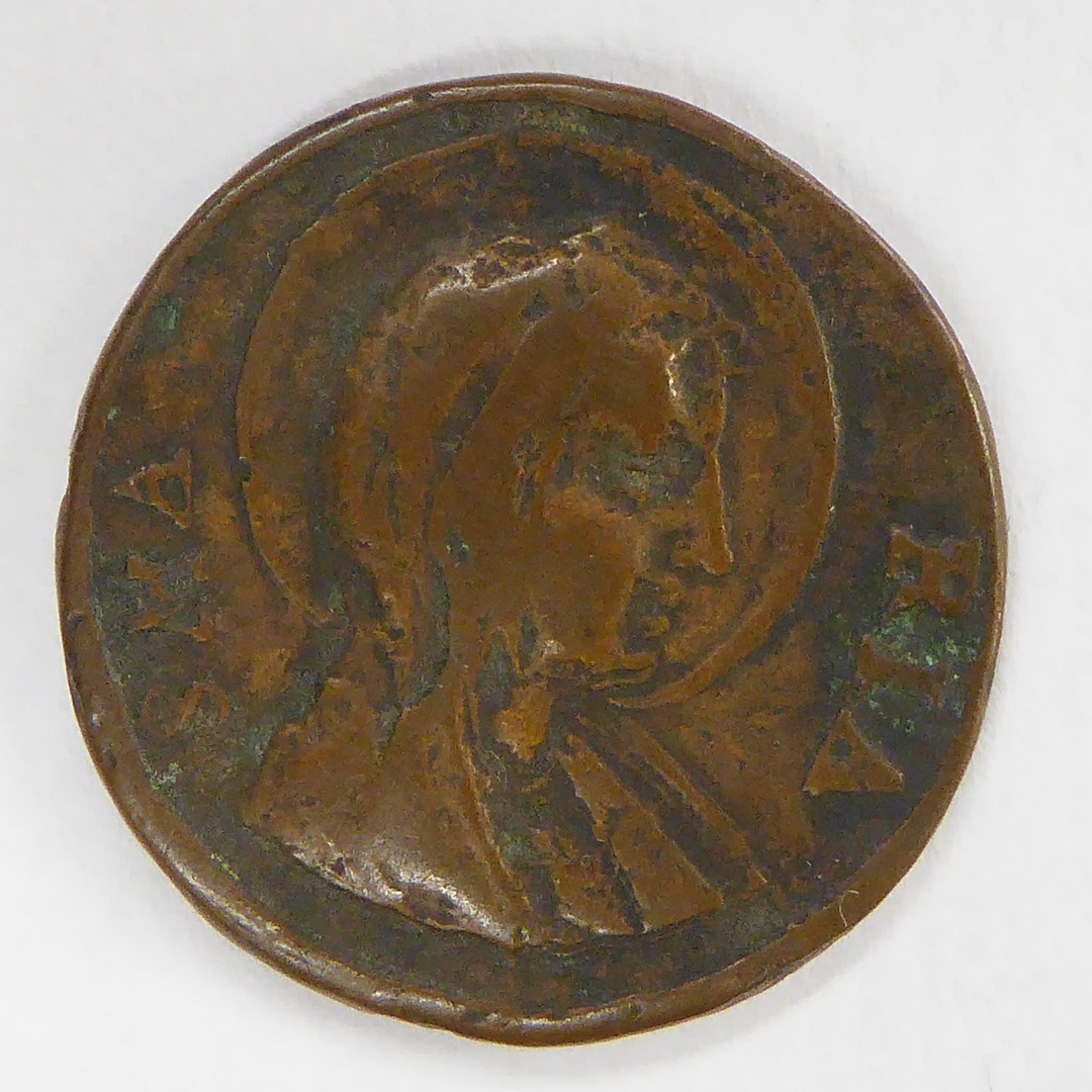 Armenpenning St. Lambertuskerk Luik met buste H. Lambertus, kz. buste H. Maria