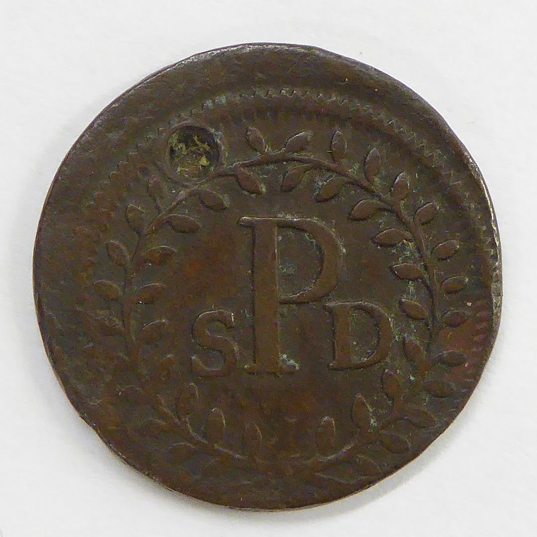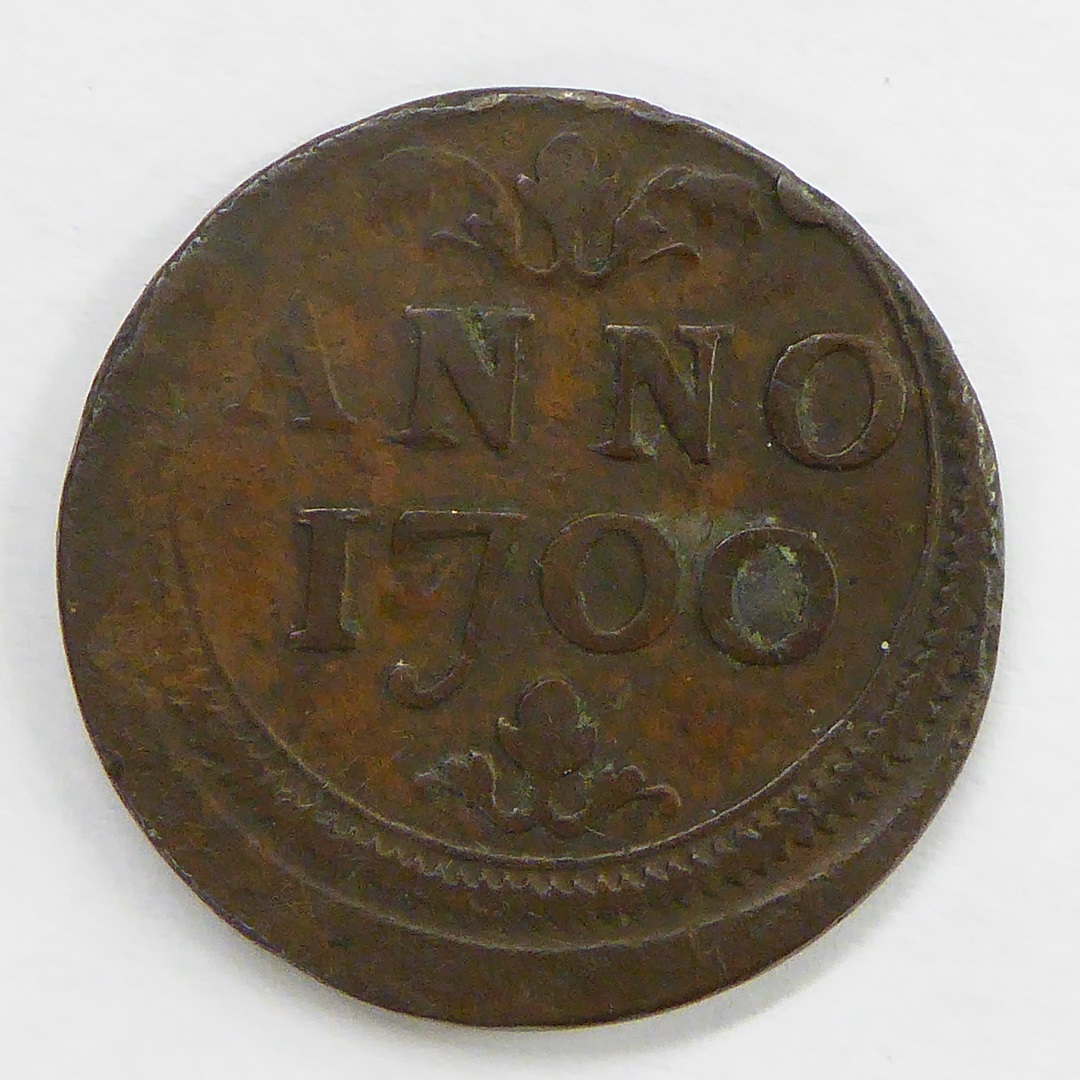 Armenpenning Sint Paulus Dom Luik met "spd" in bladerkrans, kz. met "anno 1700"