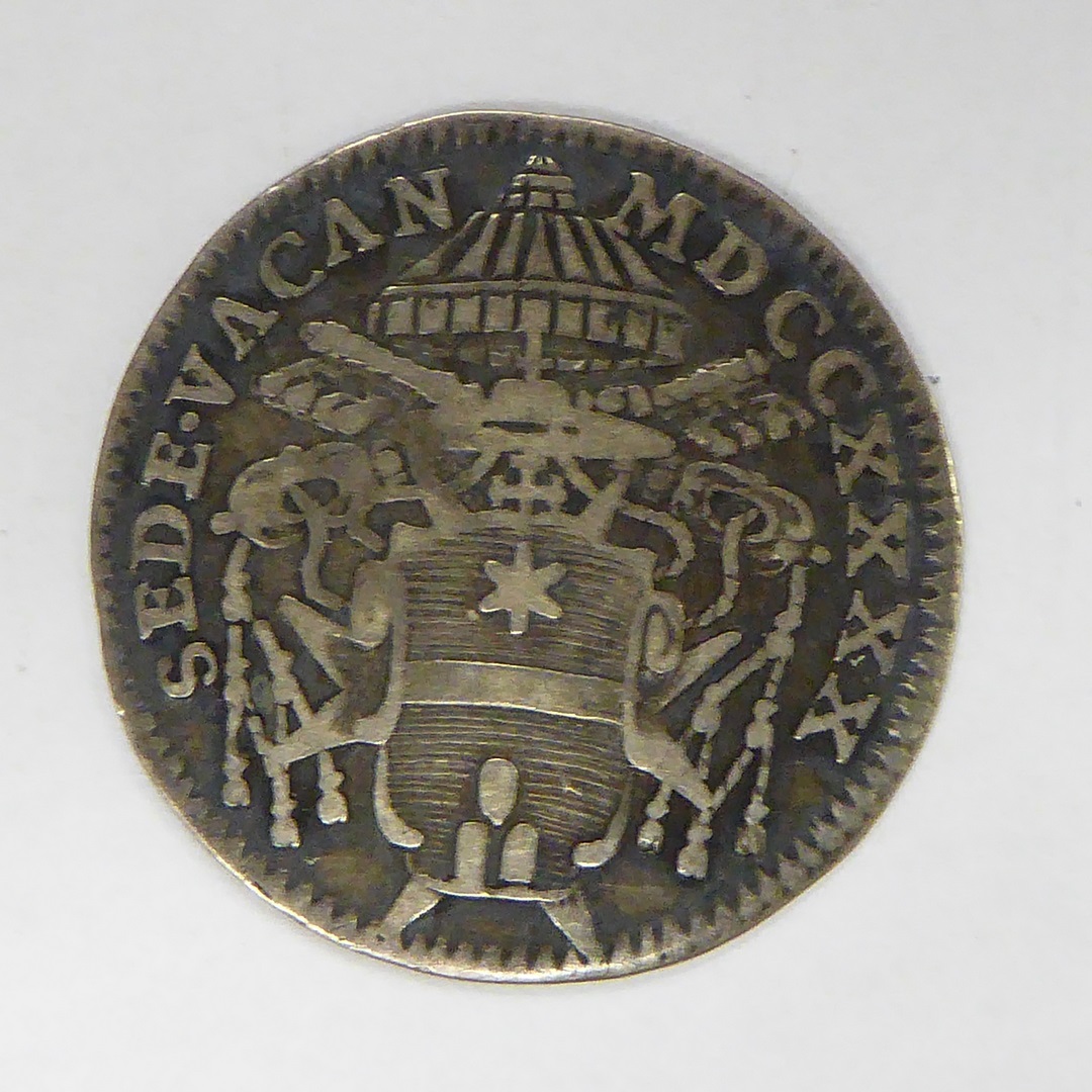 Grosso sede vacante met wapen kardinaal Annibale Albani, kz. duif in stralenkrans