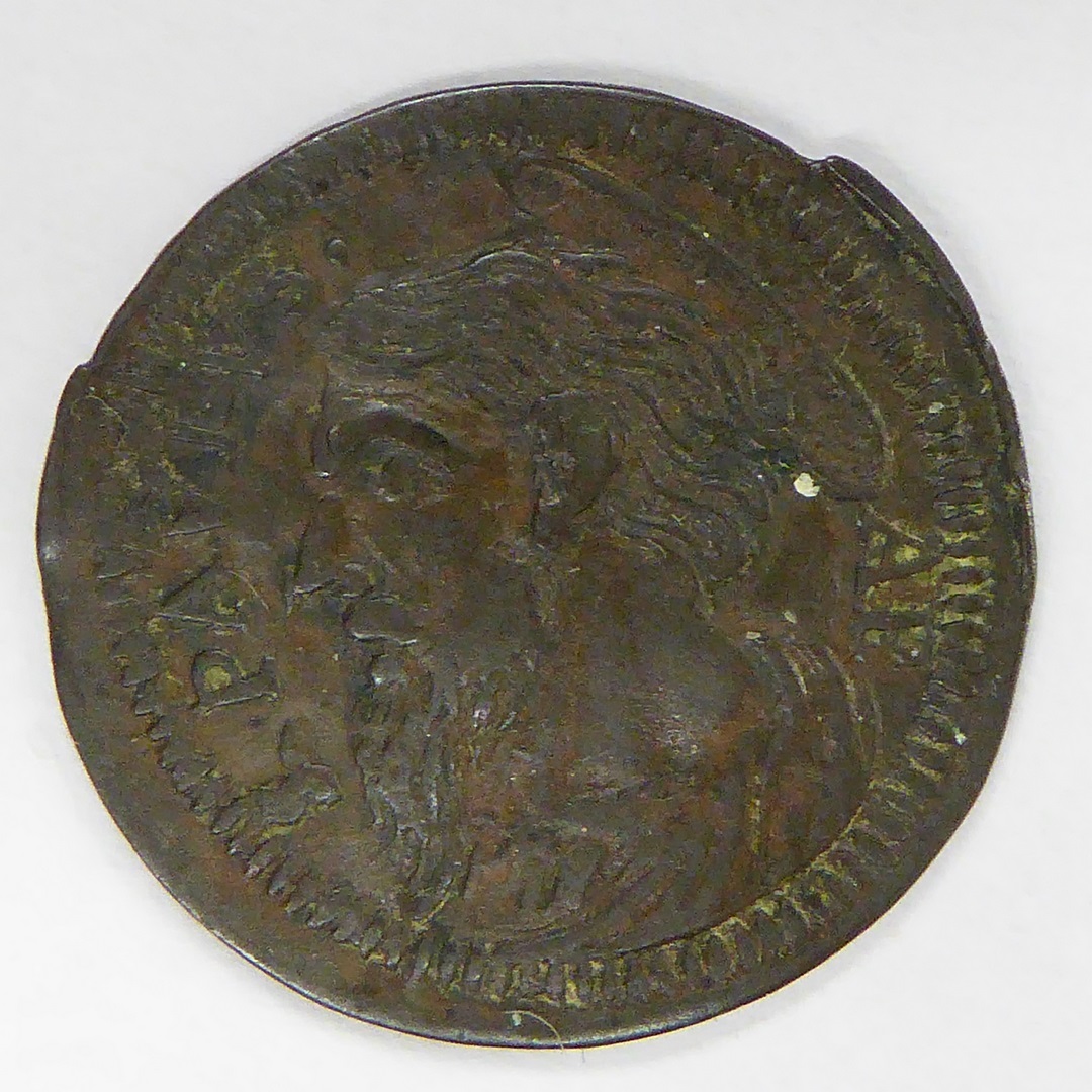 Quattrino paus Benedictus XIII (1724-1730) met wapen, kz. portret H. Paulus