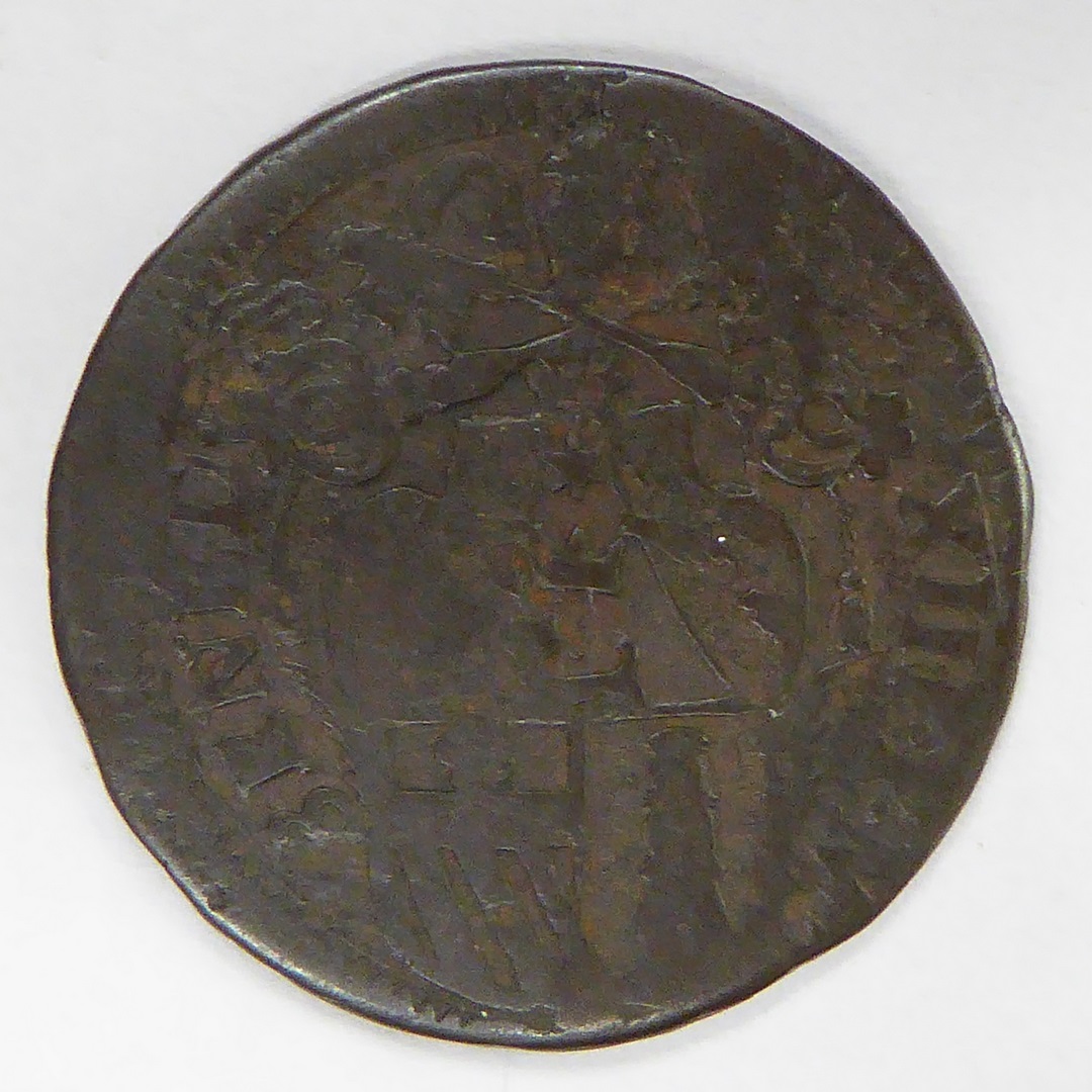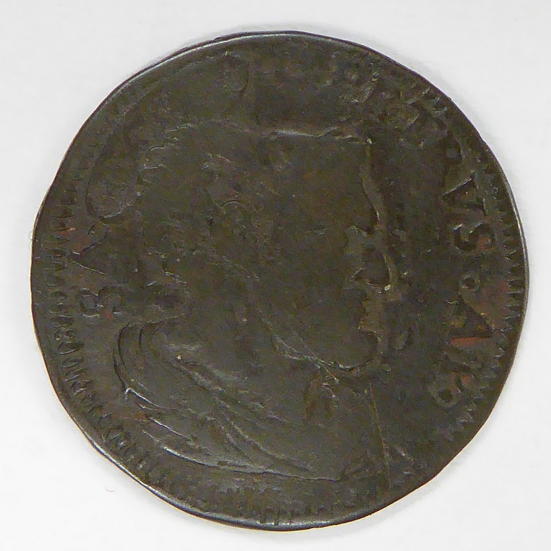 Quattrino paus Benedictus XIII (1724-1730) met wapen, kz. portret H. Petrus