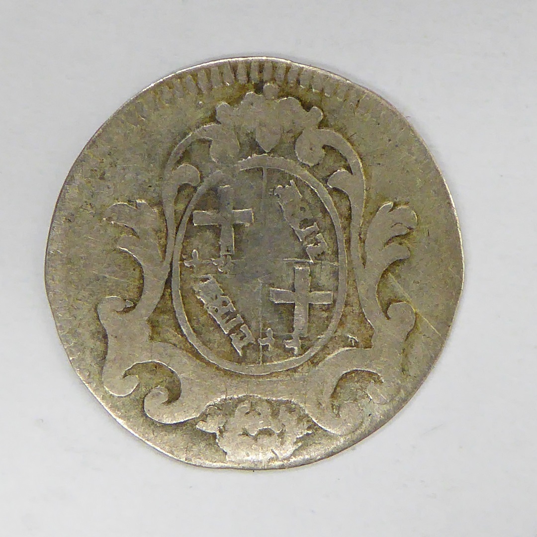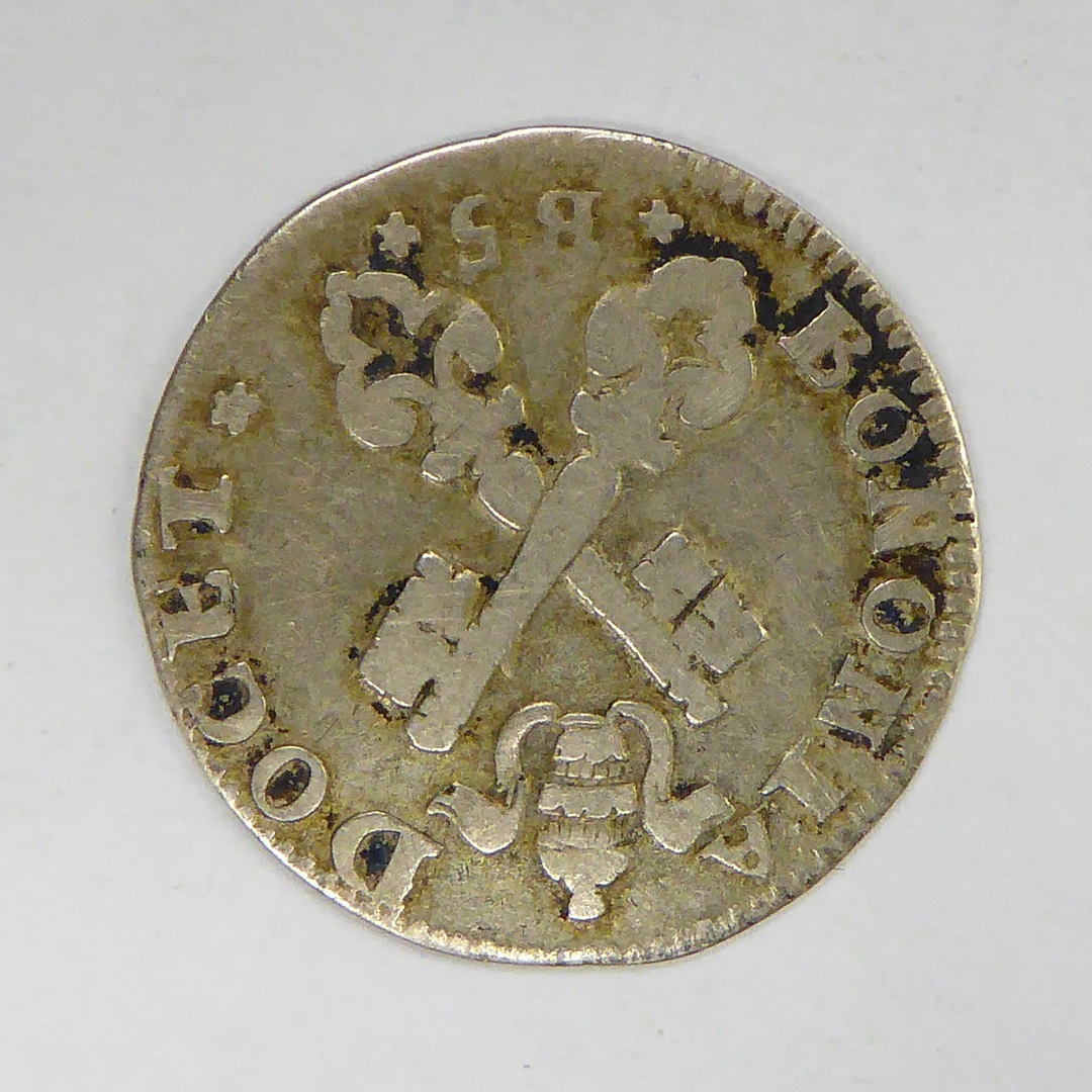 Carlino paus Clemens XII (1730-1740) met gekruiste sleutels en tiara, kz. wapen Bologna