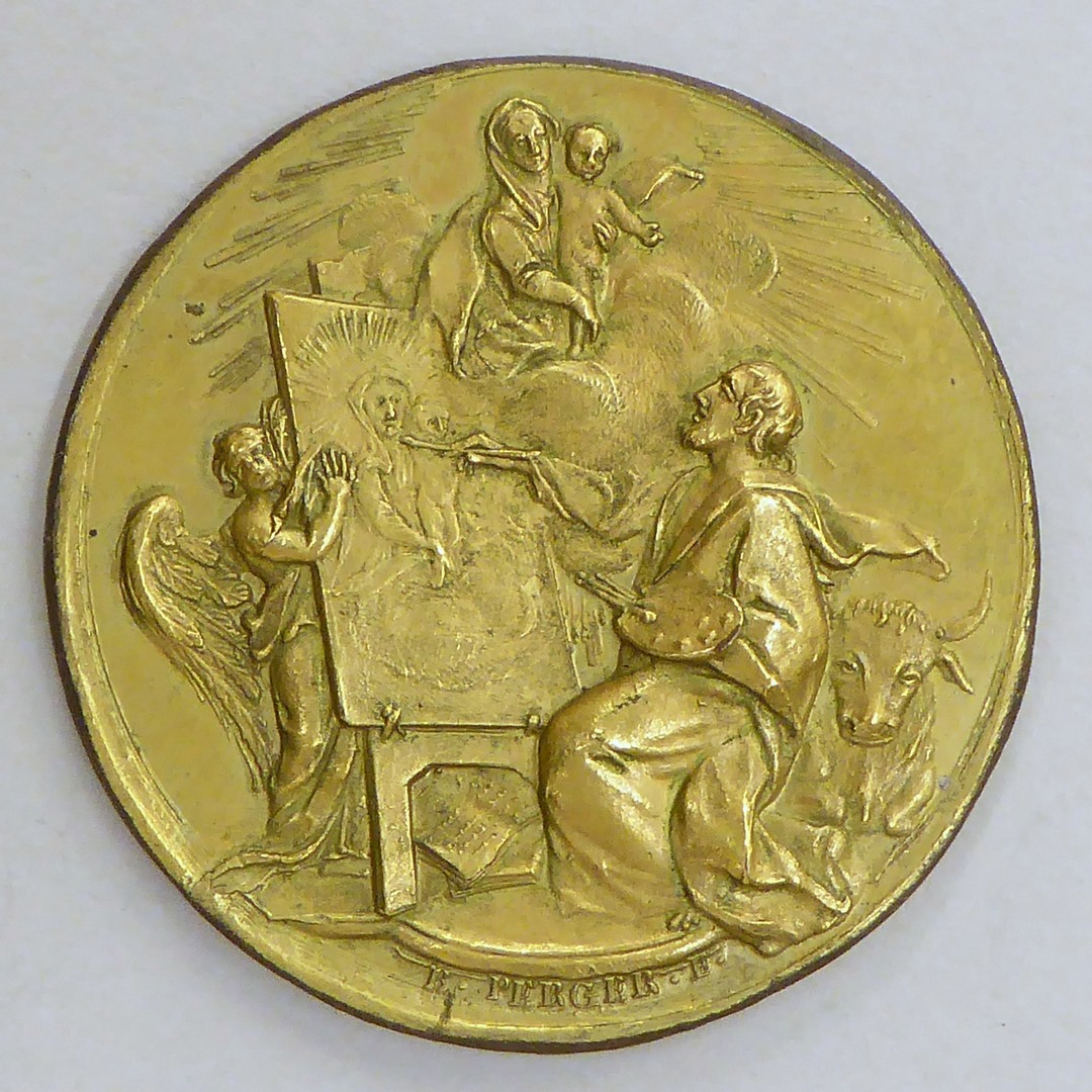 Pauspenning met portret paus Clemens XIV (1769-1774), kz. St. Lucas schilderend
