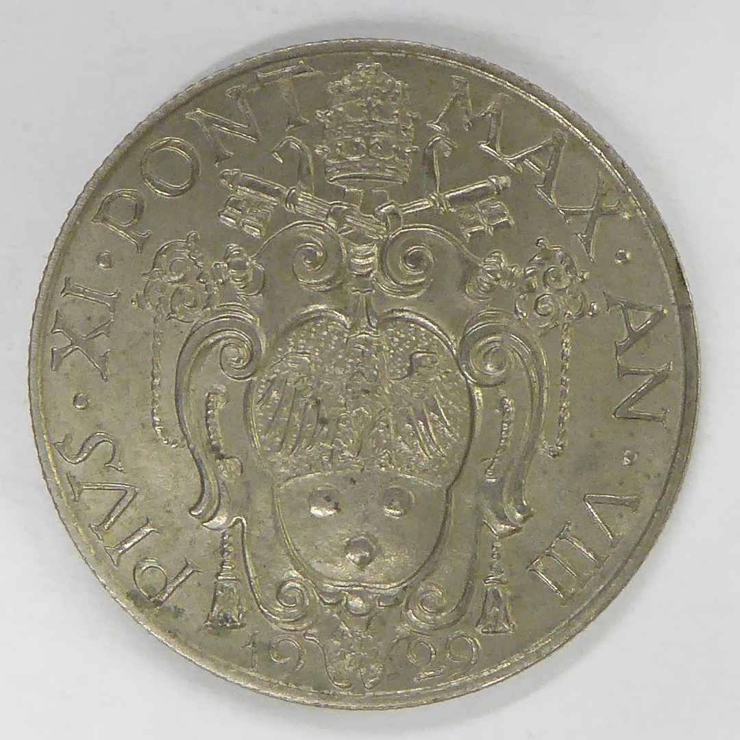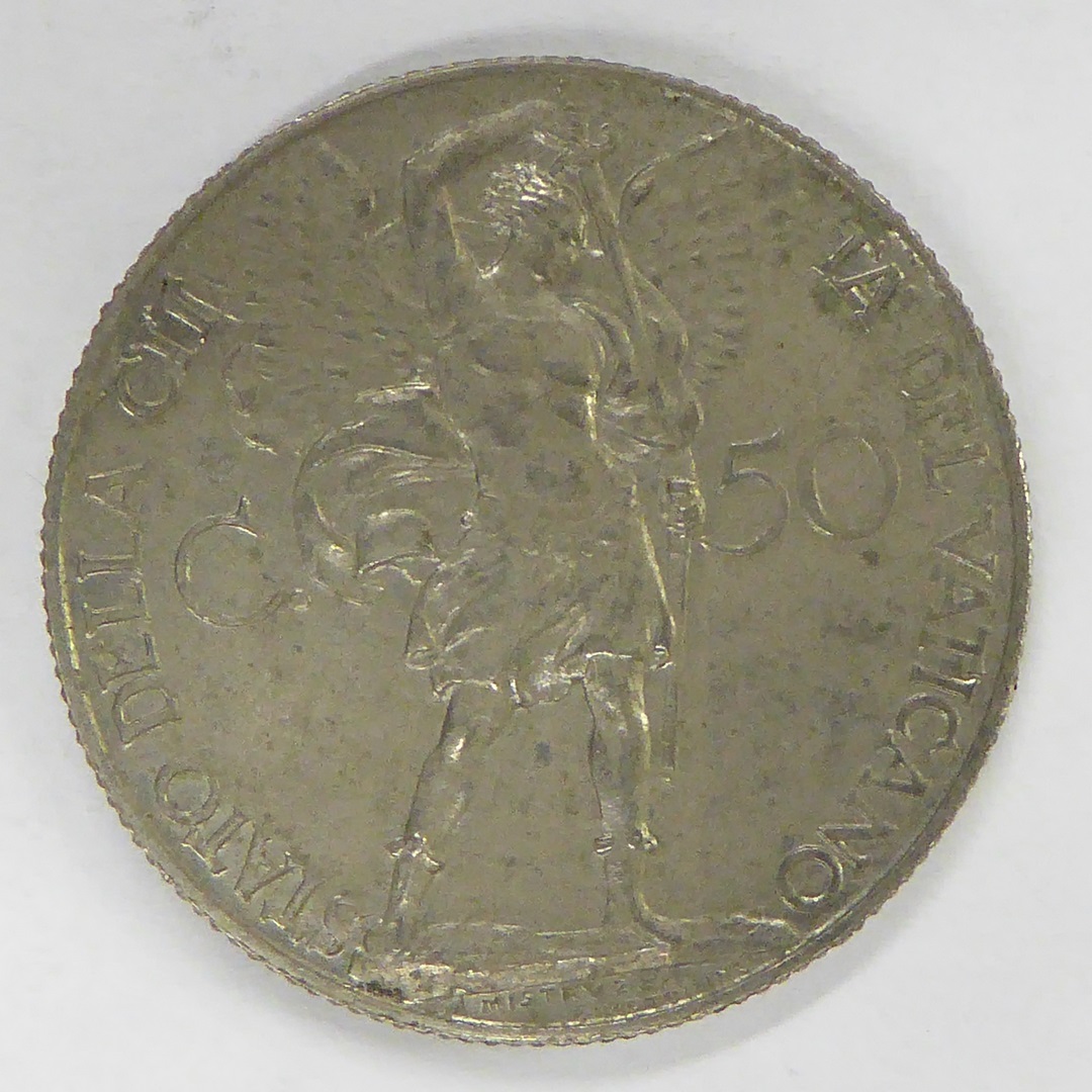 Vijftig centesimi paus Pius XI (1922-1939) met wapen, kz. aartsengel Michael