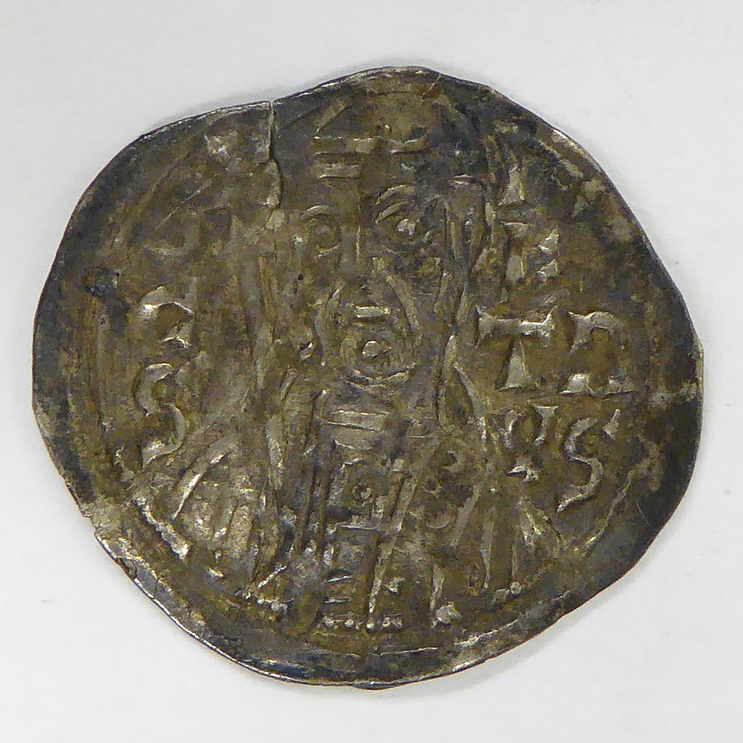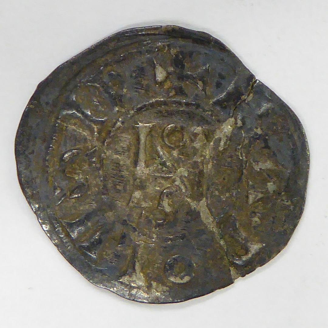 Denarius paus Joannes VIII (872-882) en Karel II (875-877) met tekst, kz. portret H. Petrus
