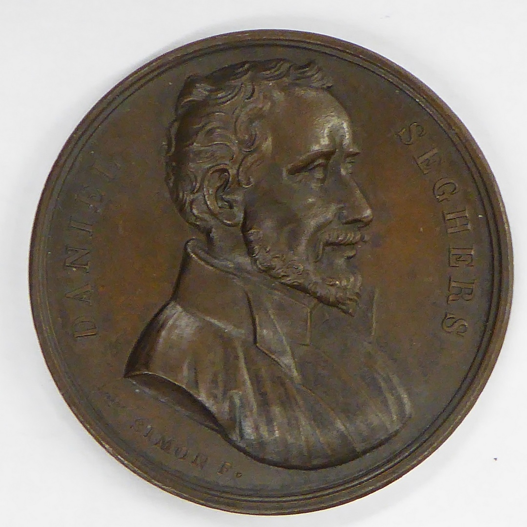 Gedenkpenning driehonderdste geboortedag Daniël Seghers met portret, kz. tekst
