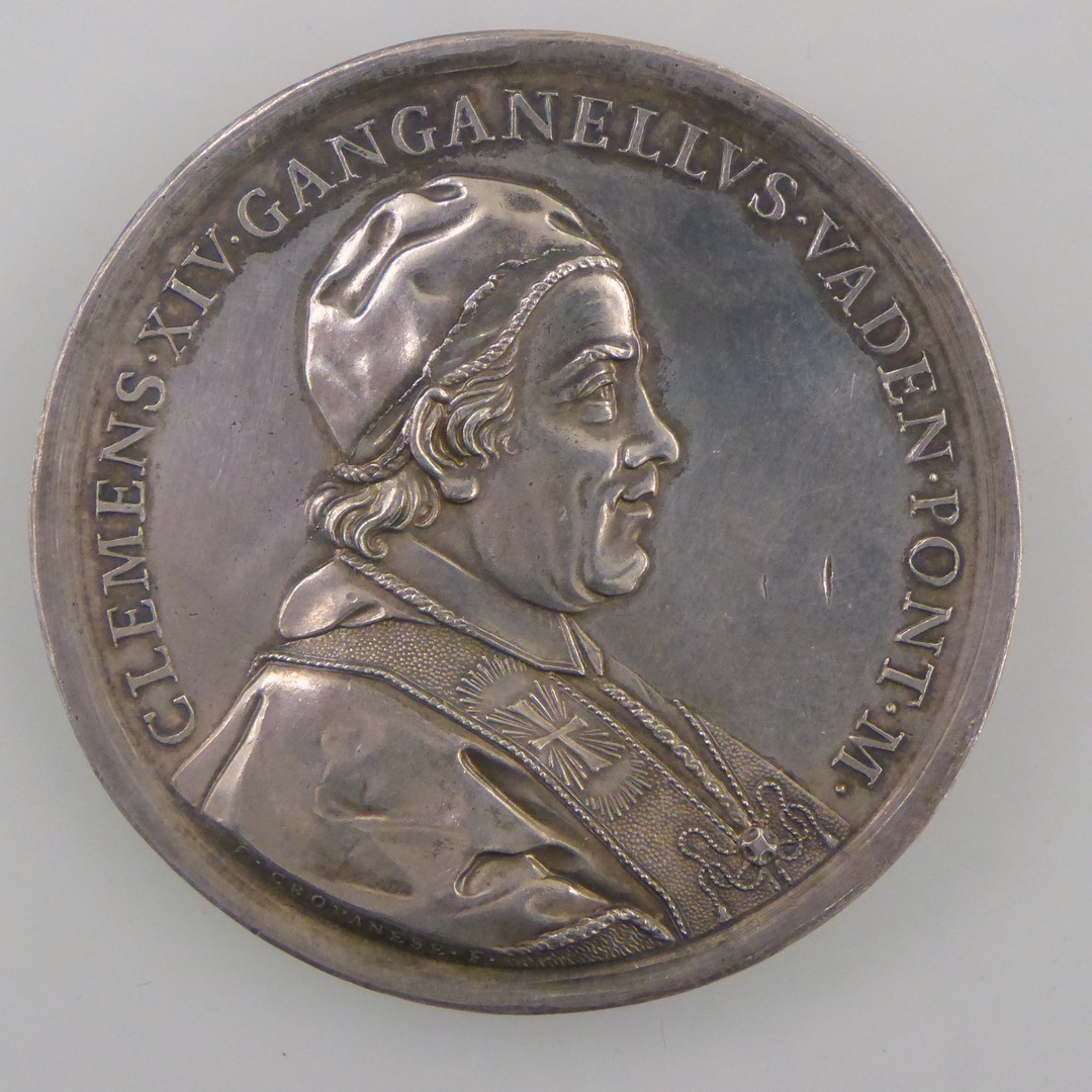 Pauspenning met portret paus Clemens XIV (1769-1774), kz. val Christus