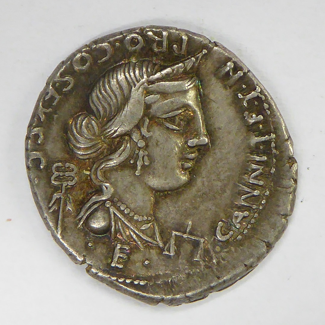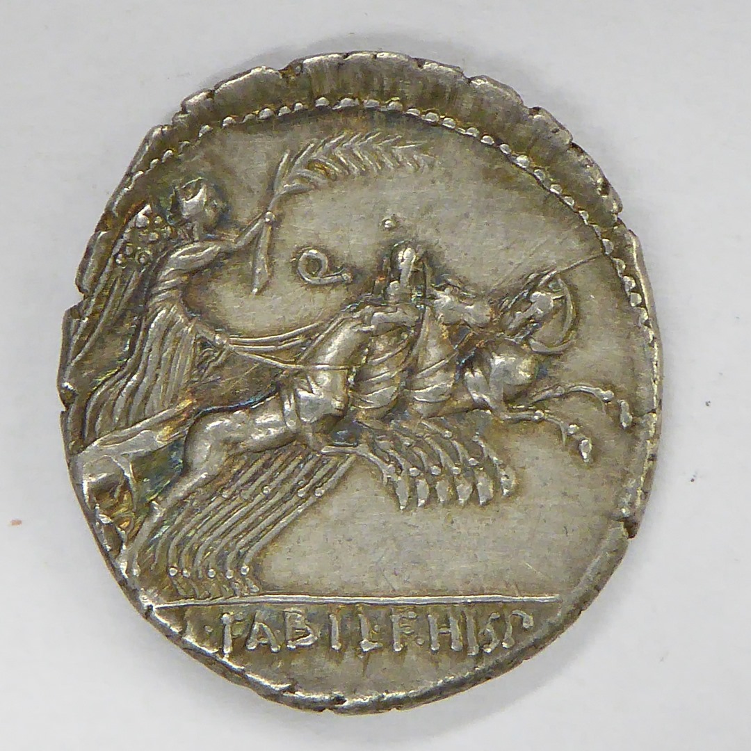 Denarius republiek Rome, Annia (82 v. Chr.-81 v. Chr.) met godinnenbuste, kz. overwinningswagen