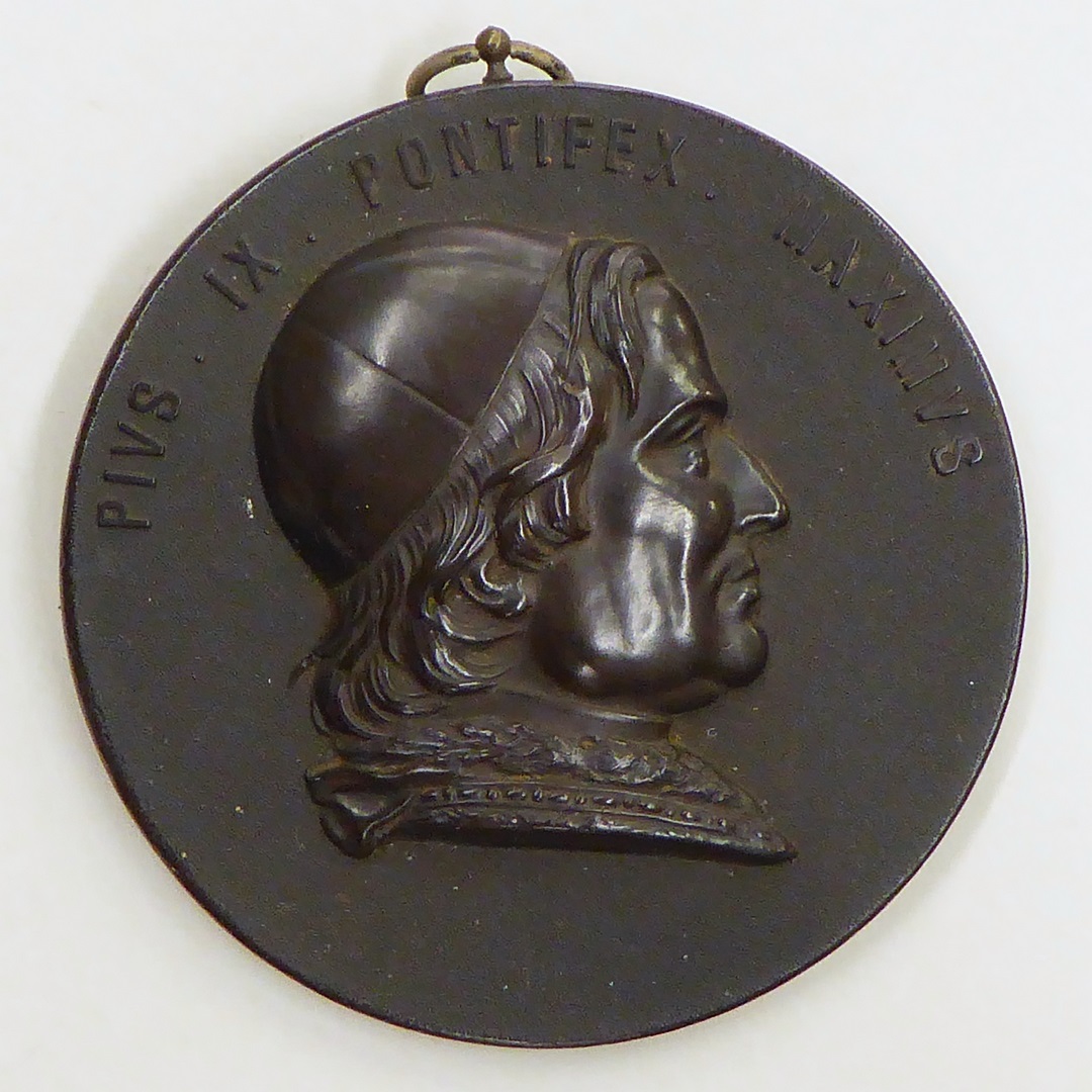 Wandversiering met portret paus Pius IX (1846-1878) en "Pius IX pontifex maximus"