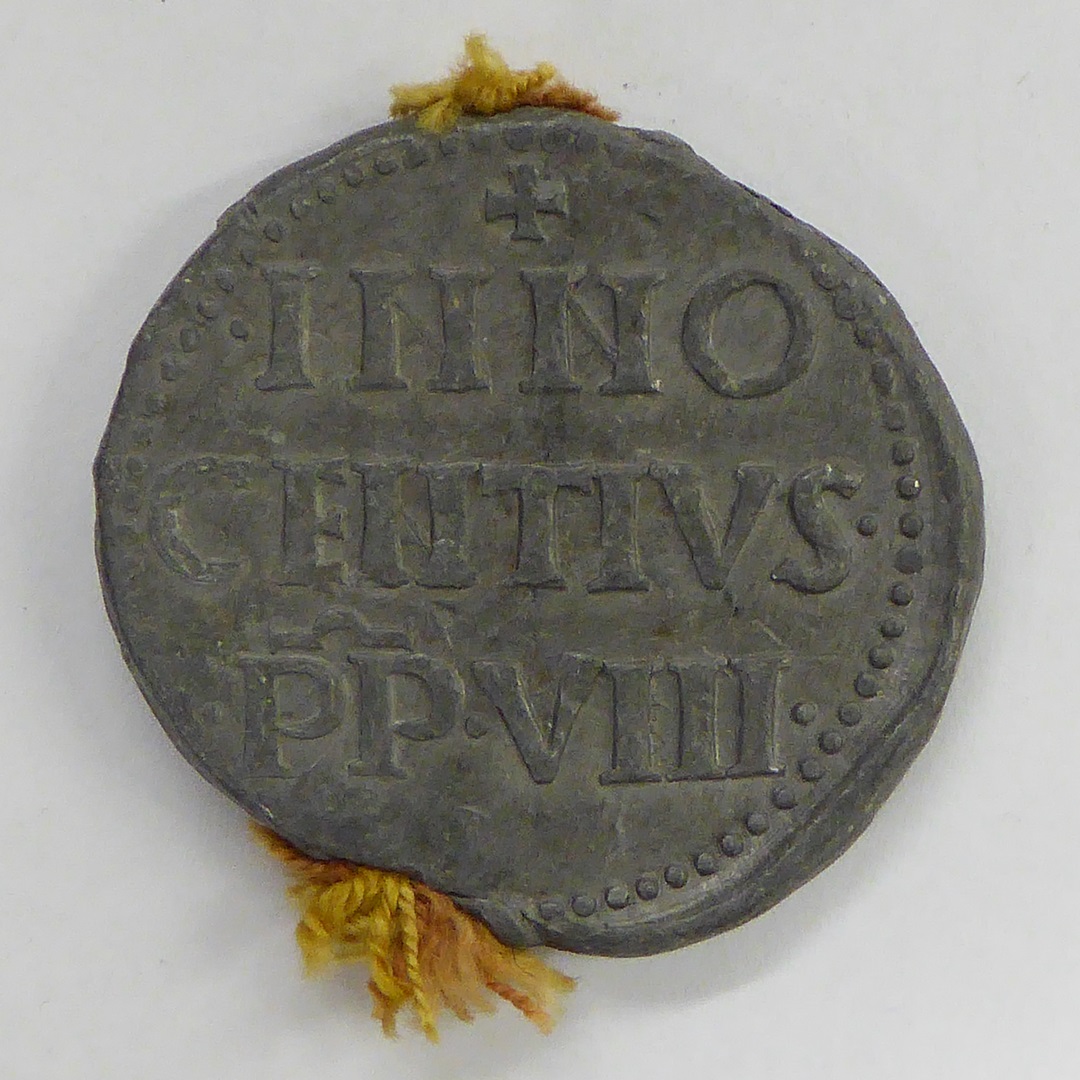 Zegel van pauselijke bul paus Innocentius VIII met naam paus, kz. Petrus en Paulus