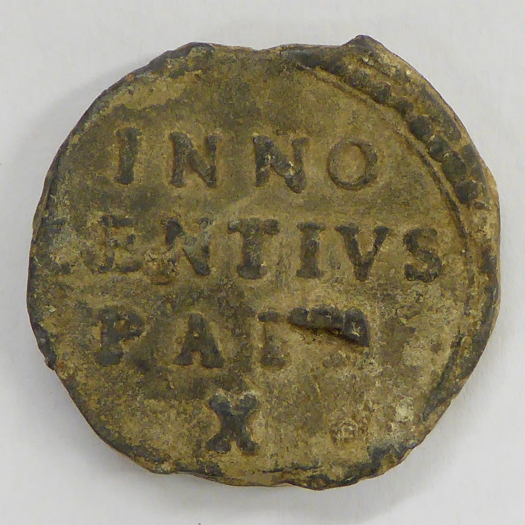 Zegel van pauselijke bul paus Innocentius X met naam paus, kz. Petrus en Paulus