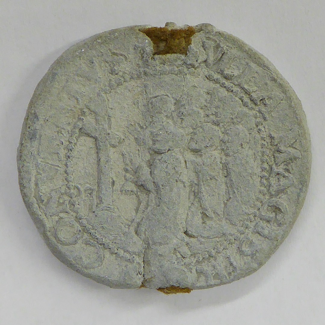 Zegel van bul grootmeester van Duitse Tong van de Johannieters met mannen voor kruis, kz. H. Grafkerk