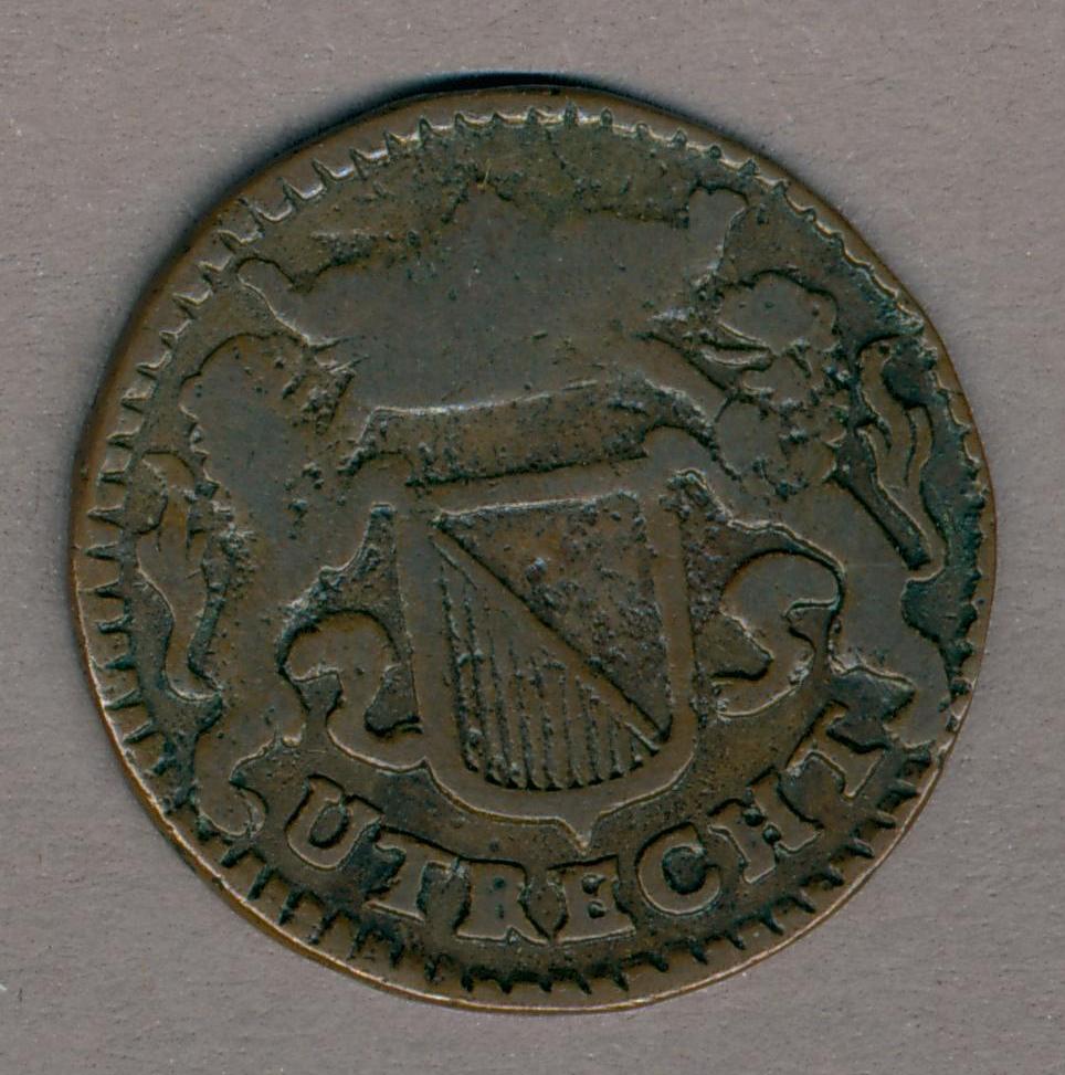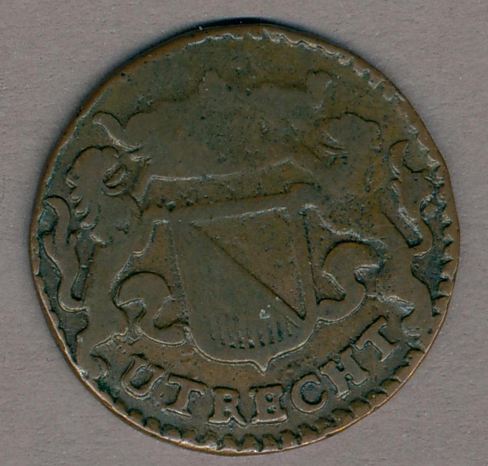 Duit stad Utrecht met wapen en onderschrift, kz. idem