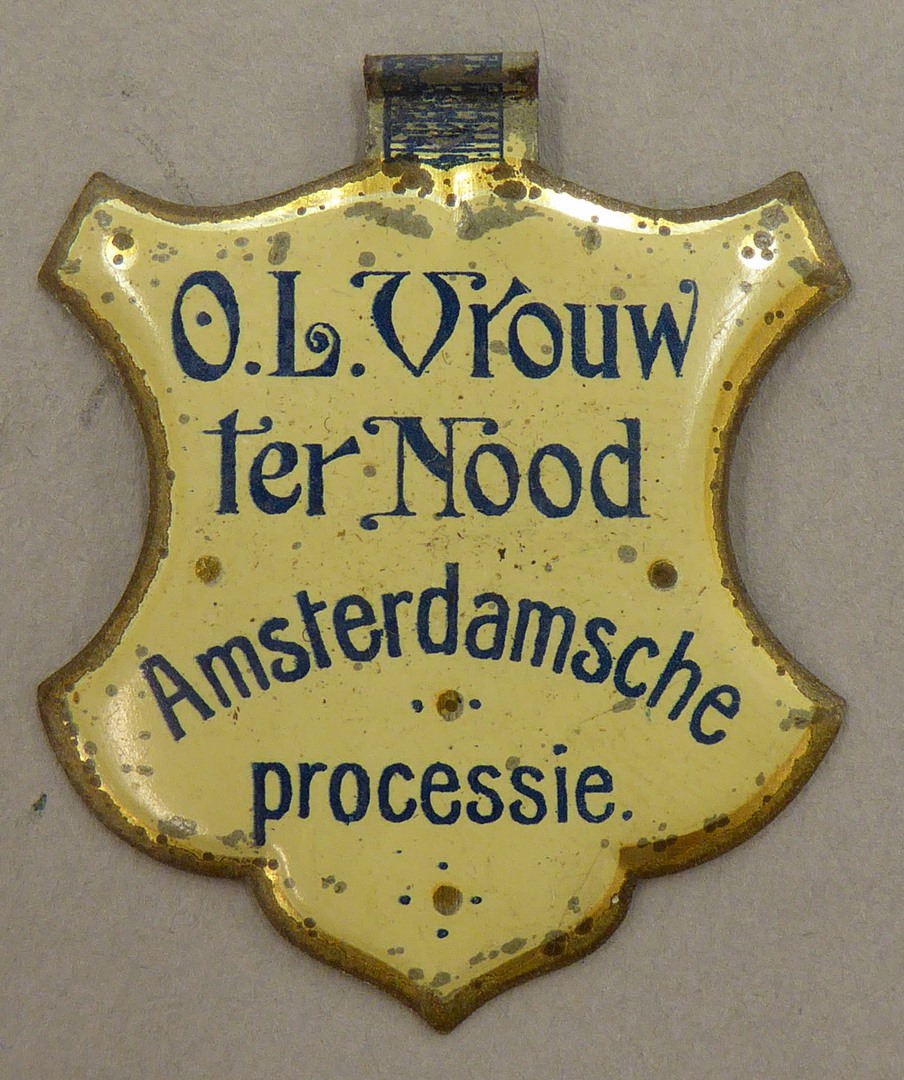 Deelnemersinsigne Amsterdamse processie O.L. Vrouw ter Nood (Heiloo), schildvormig