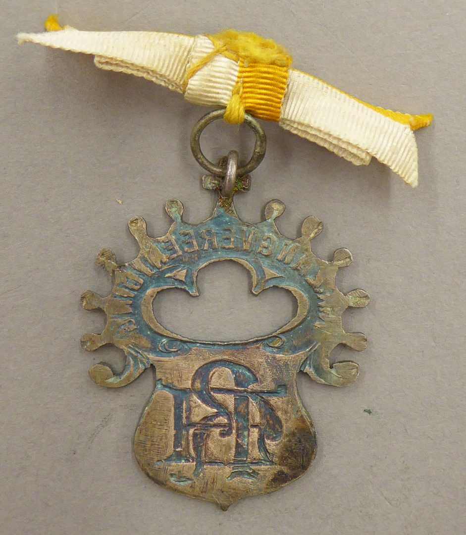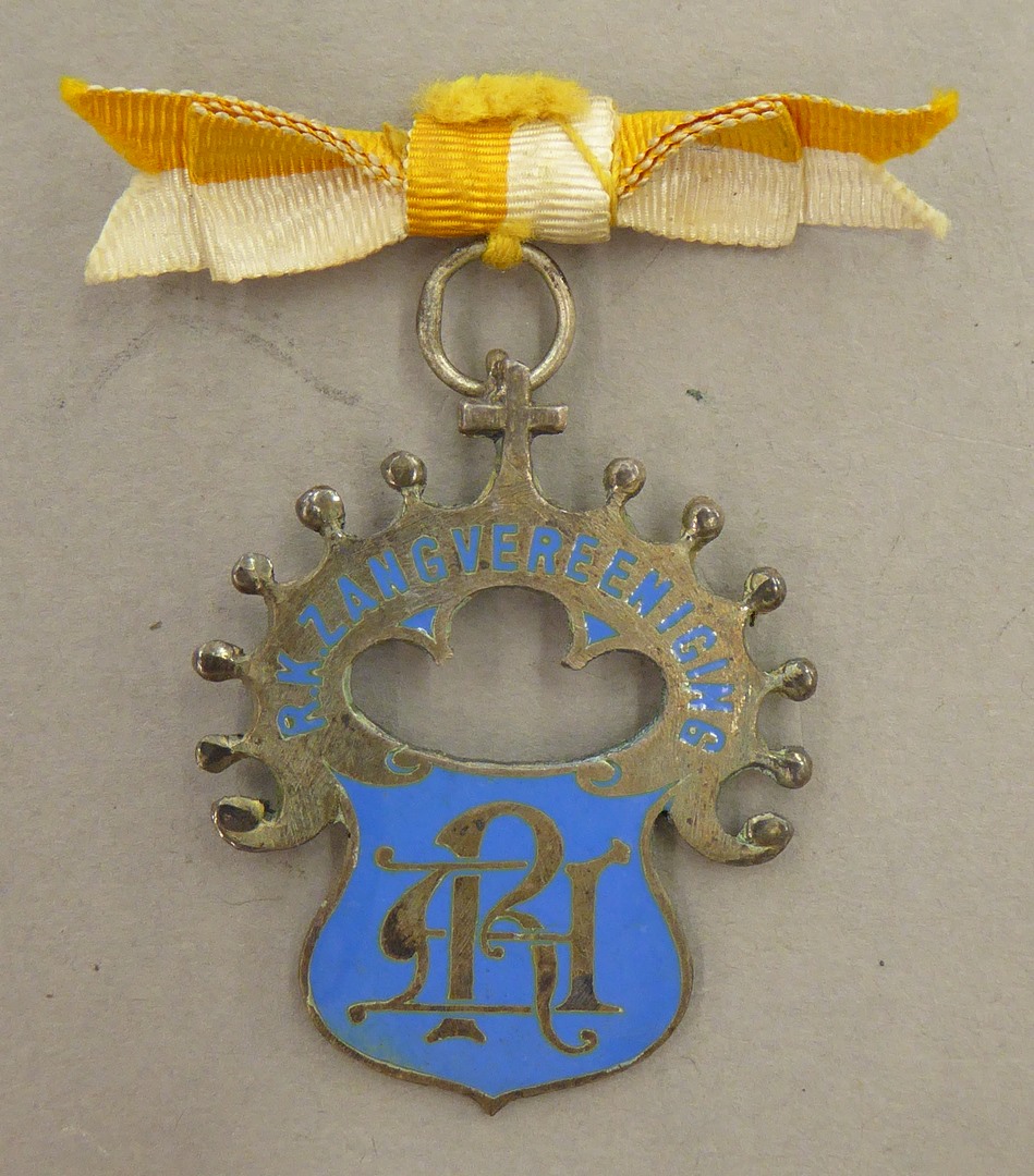Lidmaatschapsinsigne R.K. Zangvereniging R.A., aan geel-wit strikje