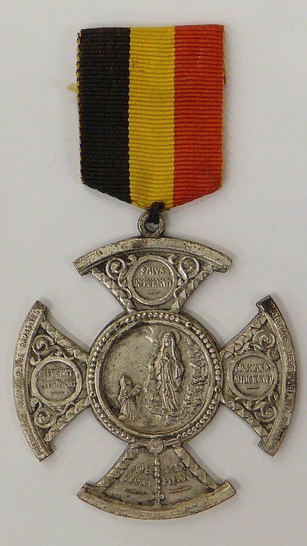 Deelnemerspenning, kruisvormig, Nationale Bedevaart Brussel naar Lourdes, aan lint