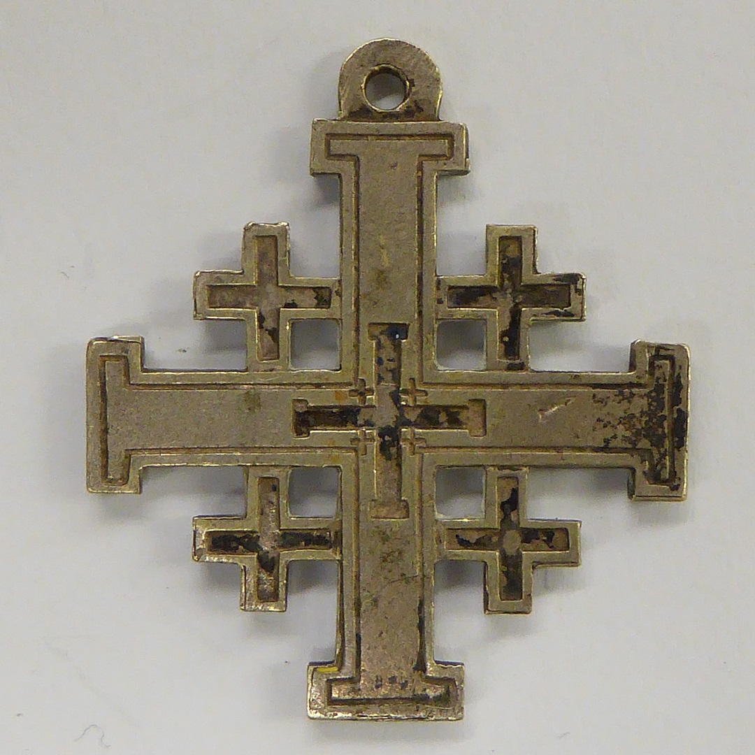 Bedevaartssouvenir Jeruzalem met "Jerusalem", in vorm van H. Graf- of Jeruzalemkruis