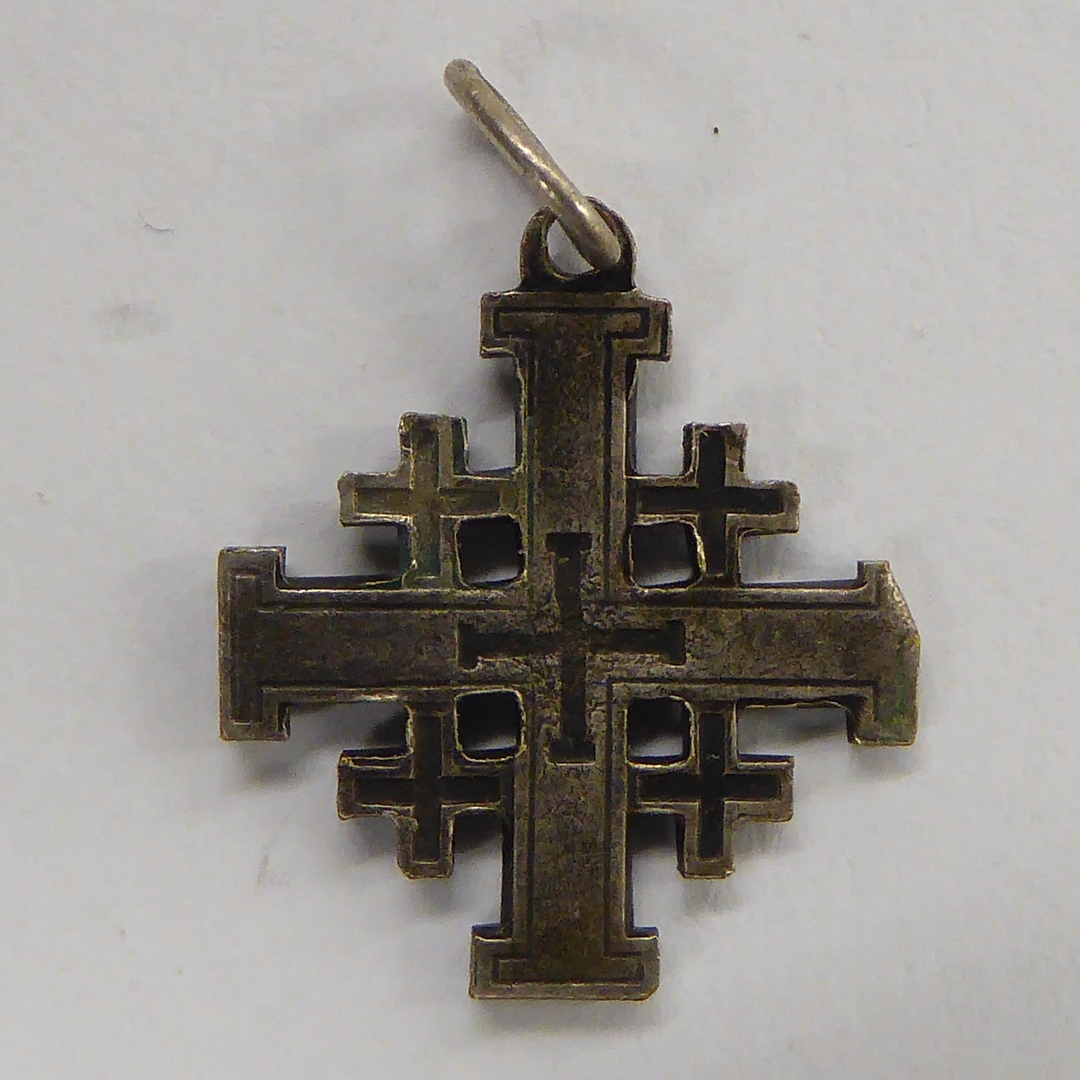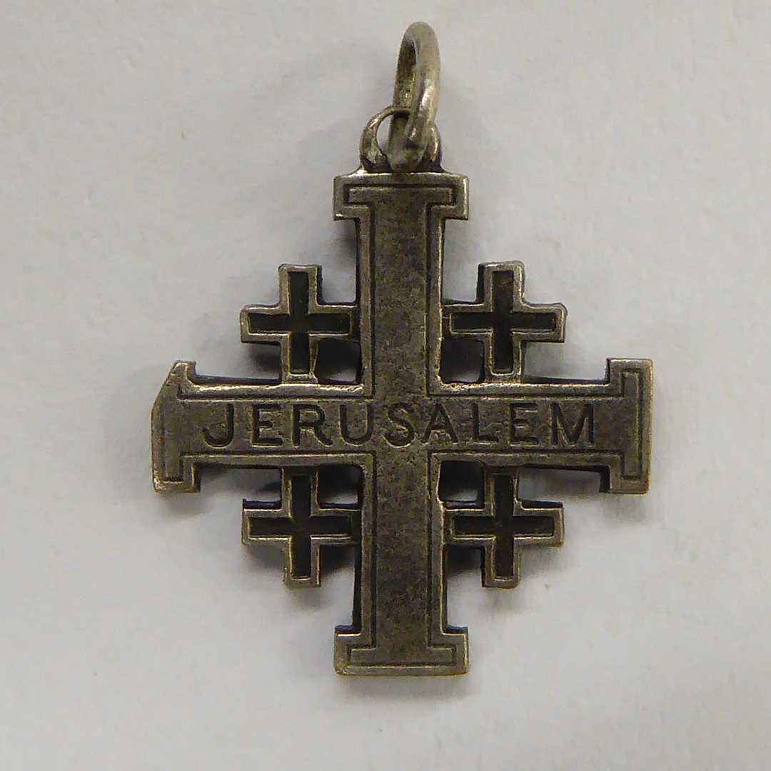 Bedevaartssouvenir Jeruzalem met "Jerusalem", in vorm van H. Graf- of Jeruzalemkruis
